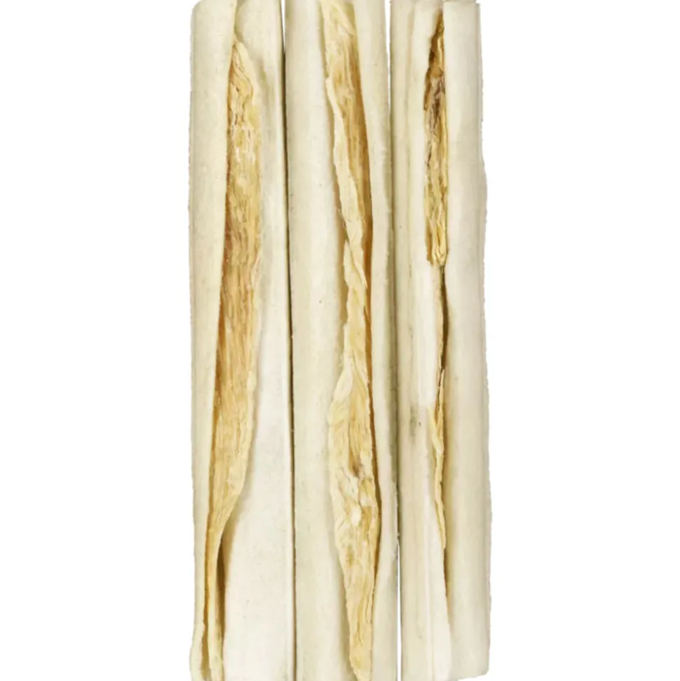 Kauwsticks met kippenvlees, gewikkeld in stevige premium runderhuid, de unieke combinatie van kauwbot en traktatie.