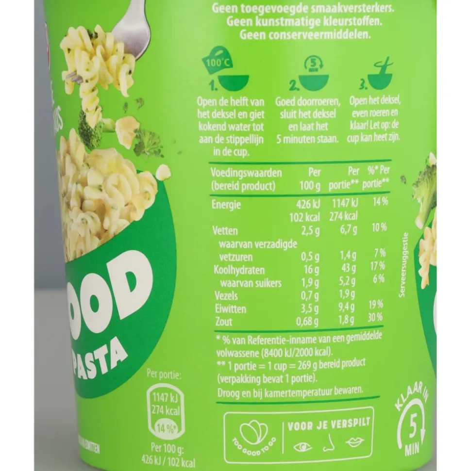 - Deze instant pasta zit in een handige cup en is klaar in 5 minuten