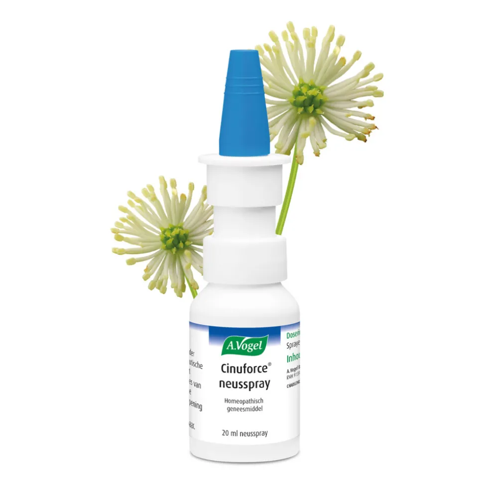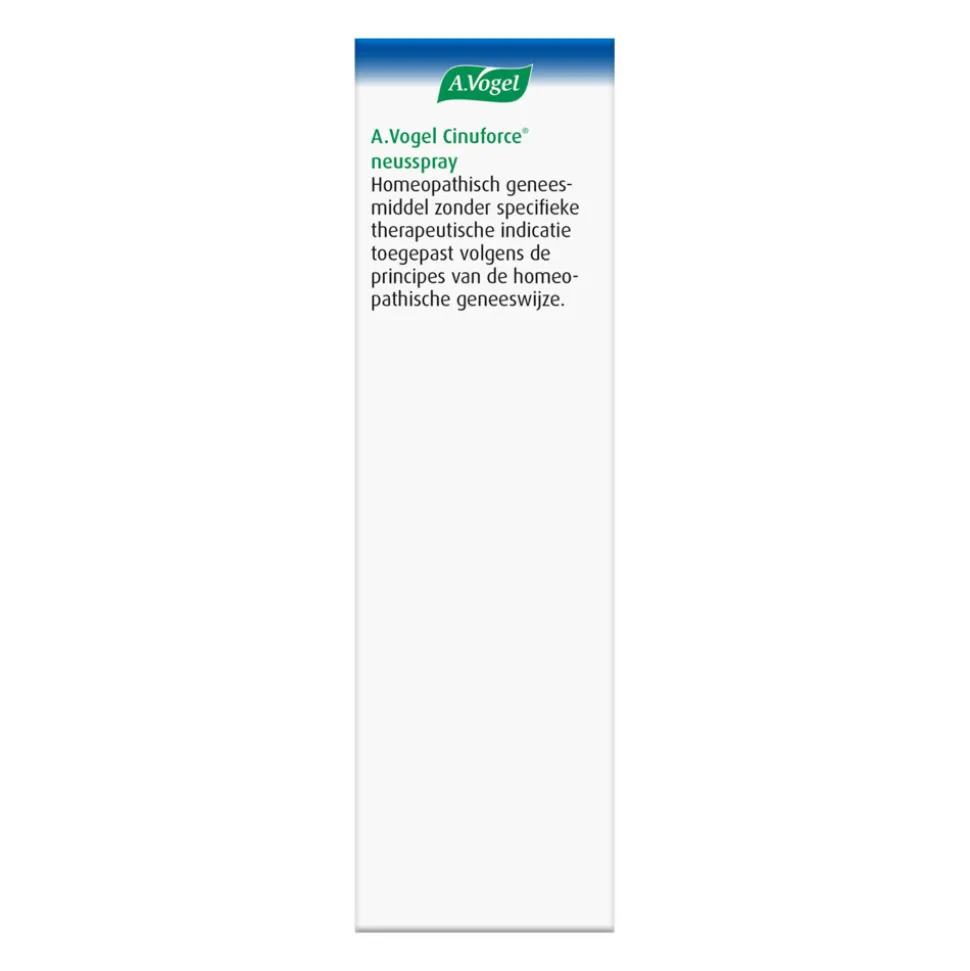 A.Vogel Cinuforce neusspray is een homeopathisch geneesmiddel. A.Vogel Cinuforce neusspray wordt toegepast volgens de principes van de homeopathische geneeswijze. Door de huidige wetgeving is het niet mogelijk om op de verpakking te vermelden waar dit product voor is (indicatie) en meer informatie te geven.Plein.nl mag deze informatie ook niet op de site zetten.