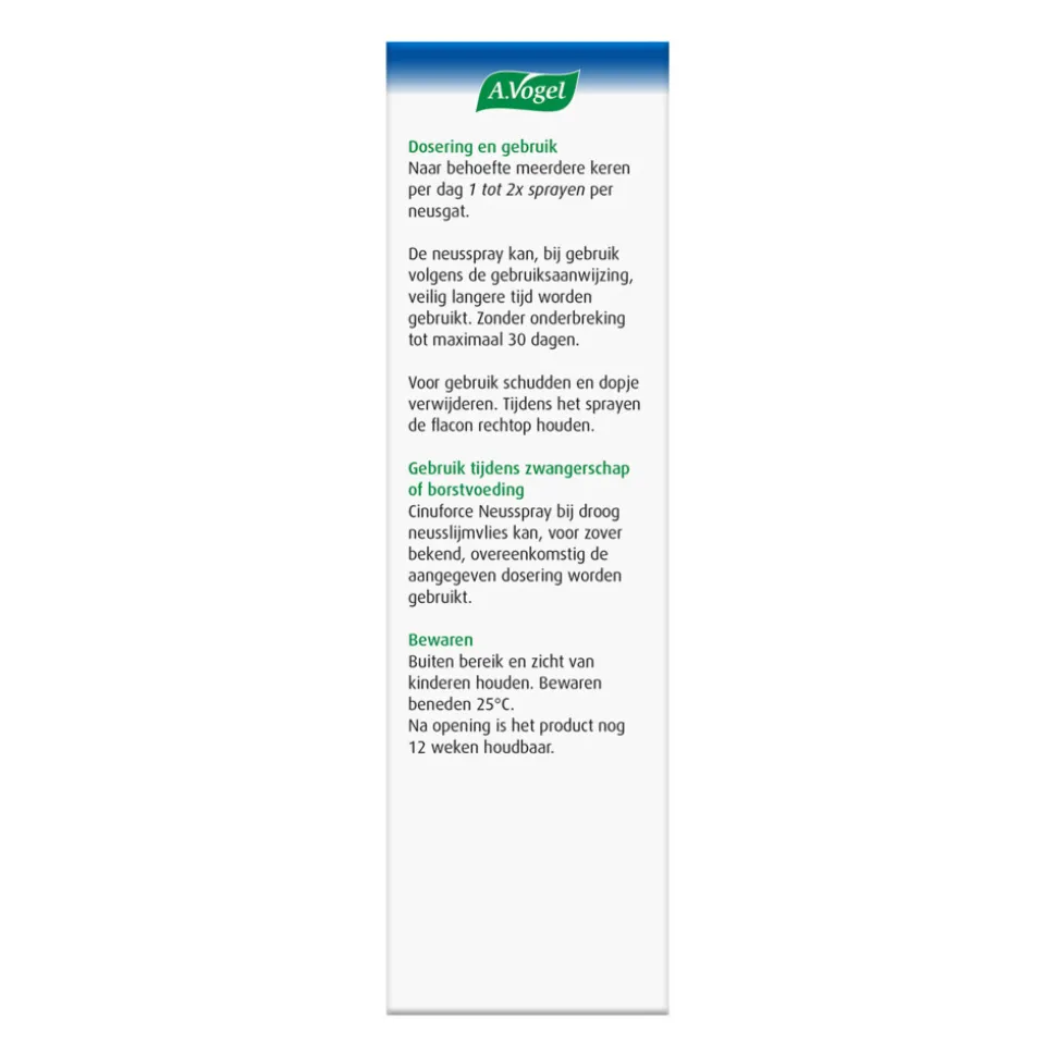 - Cinuforce neusspray bij droog neusslijmvlies kan, voor zover bekend, overeenkomstig de aangegeven dosering worden gebruikt tijdens zwangerschap of in de periode dat je borstvoeding geeft.