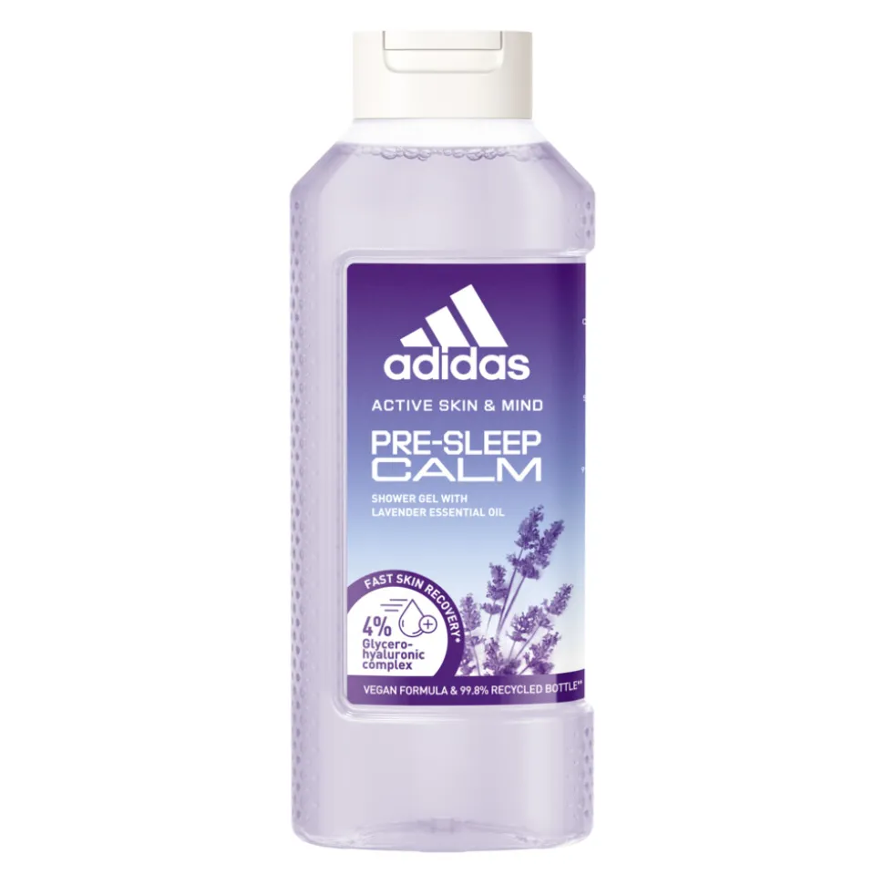 Optimaliseer je workout met de adidas Active Skin & Mind producten. De high-impact formules zijn in samenwerking met sportwetenschappers ontwikkeld om je dagelijkse routine opnieuw uit te vinden. – Active Skin & Mind Pre-Sleep Calm Shower Gel kalmeert je zintuigen voor het slapengaan danzij de ontspannende geur met essentiële lavendelolie – Het glycero-hyaluroncomplex zorgt voor een snel herstel van de vochtbalans van de huid na het reinigen – de douchegel is speciaal samengesteld voor atleten, is dermatologisch getest en bevat geen sulfaatgebaseerde oppervlakte-actieve stoffen – de clean en vegan formule is geschikt voor alle huidtypen, ook de zeer gevoelige huid – adidas is toegewijd aan het behoud van onze planeet, daarom is de formule 98% biologisch afbreekbaar en is de fles gemaakt van 100% gerecycled materiaal (afgezien van de dop en het etiket) en navulbaar