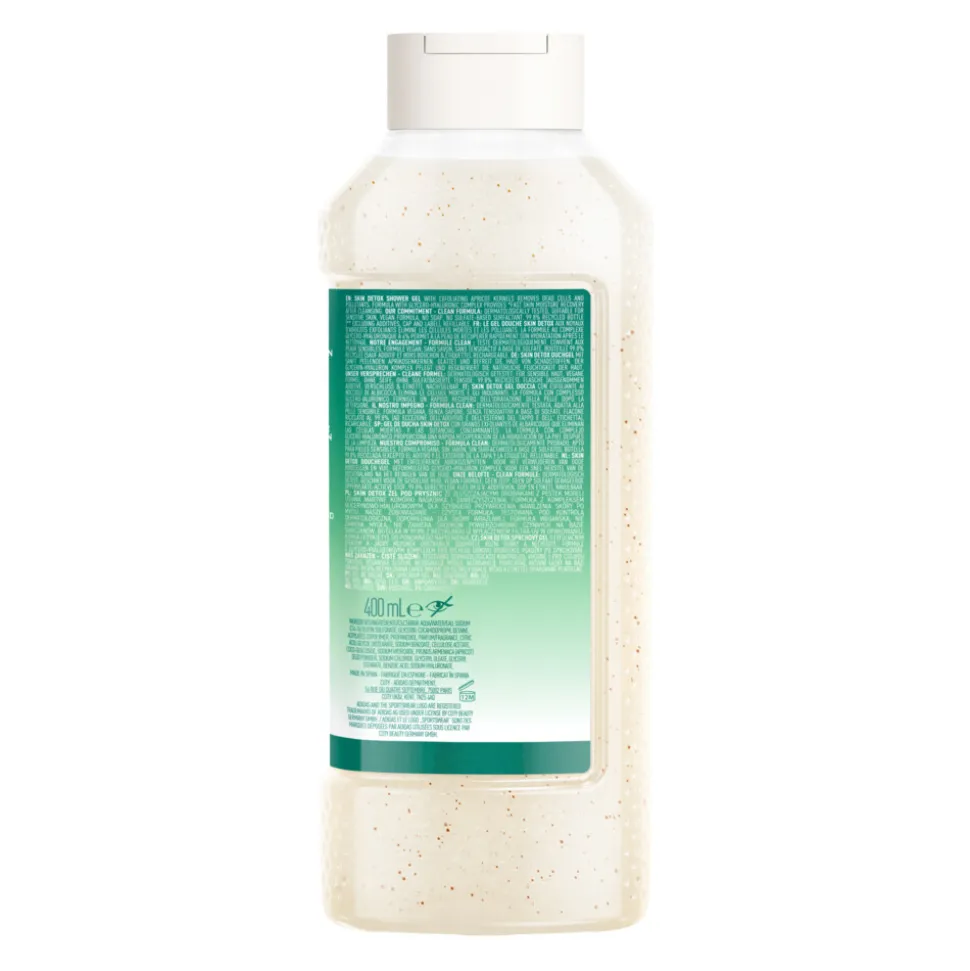 ADIDAS SHOWER GEL ACTIVE SKIN & MIND SKIN DETOX biedt een milde exfoliërende reiniging met natuurlijke abrikozenpitdeeltjes die overtollig zweet en oppervlakkige onzuiverheden verwijderen. Het Glycero-Hyaluronic Complex zorgt voor een snel herstel van het vochtgehalte na het douchen. De schone en vegan formule is zelfs geschikt voor de meest gevoelige huid. Fles van 100% gerecycled materiaal (excl. toevoegingen, dop en etiket).