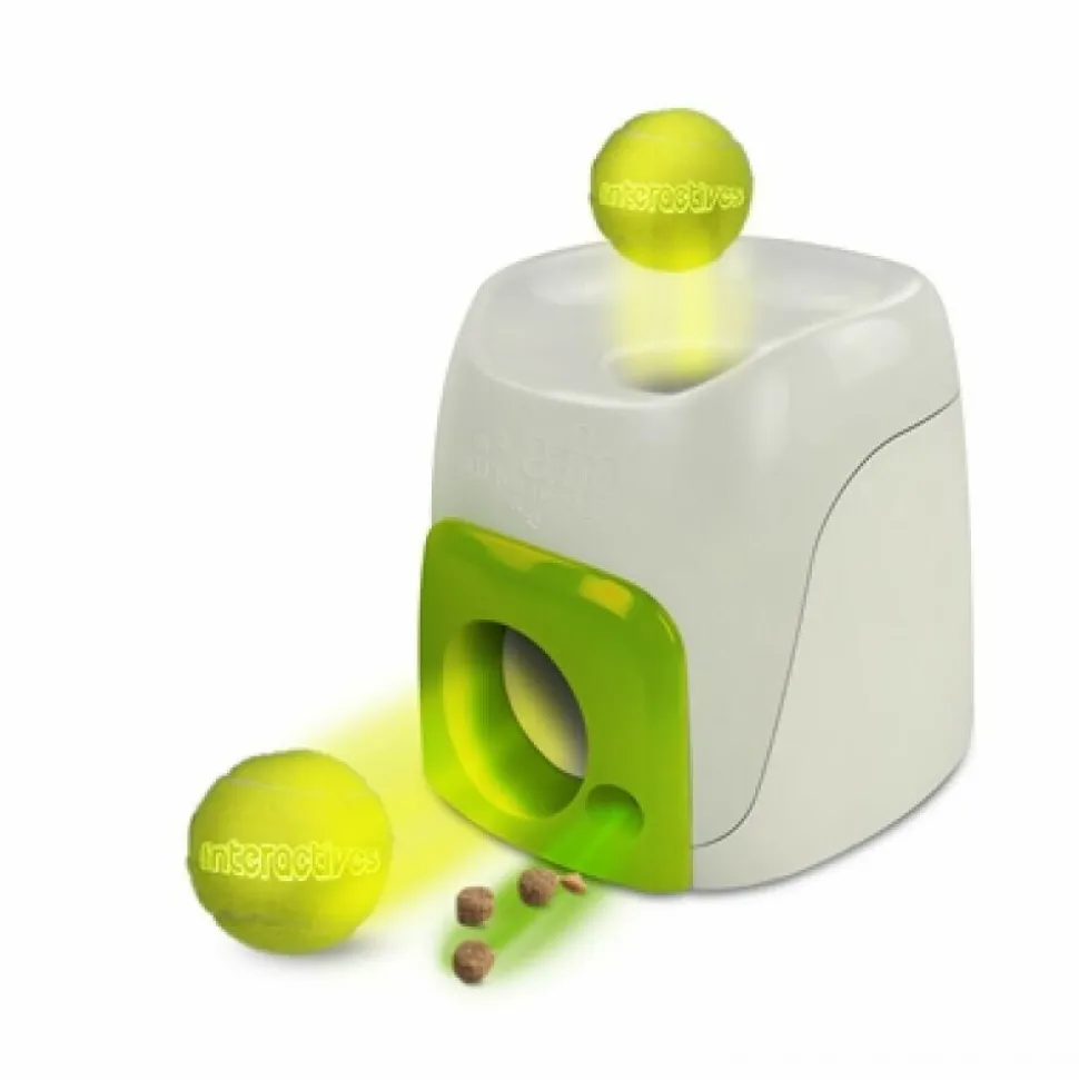 Om het voor de hond interessant te houden komt er niet elke keer een snoepje uit het apparaat. Let op: De bal rolt uit het apparaat en wordt niet geschoten.