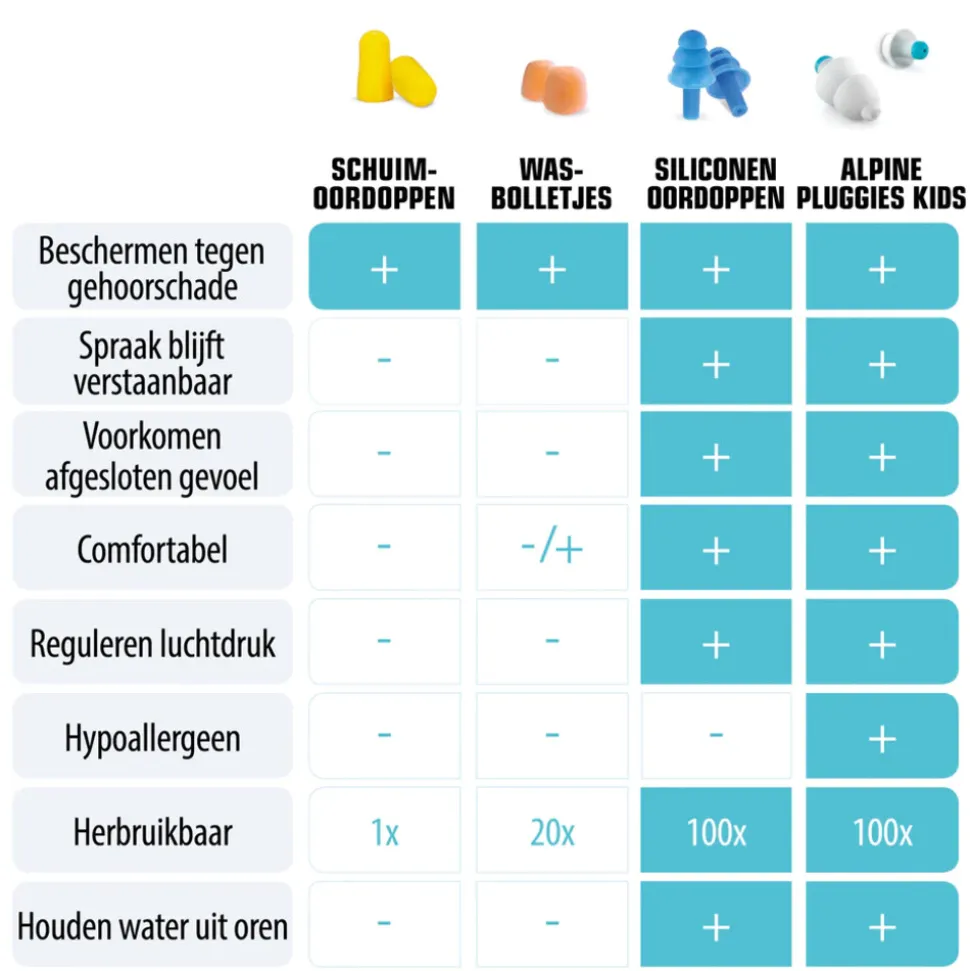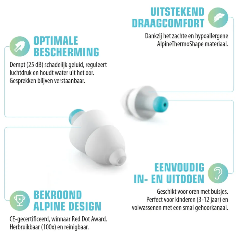 - Gesprekken blijven hoorbaar door unieke AlpineAcousticFilters