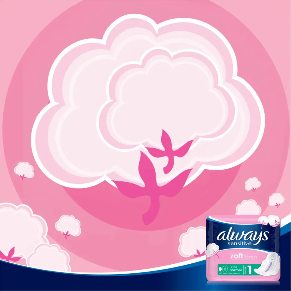 Een toplaag zo zacht als katoen (bevat geen katoen) en unieke comfortzones die je gevoelige huid extra comfort geven. Ideaal voor de dagen met een gemiddelde menstruatie. De Always Sensitive Ultra Normal Maandverbanden zijn de beste maandverbanden van het Always Sensitive gamma voor de dagen met een lichtere tot gemiddelde menstruatie. Het biedt je tot wel 100% bescherming tegen lekken.