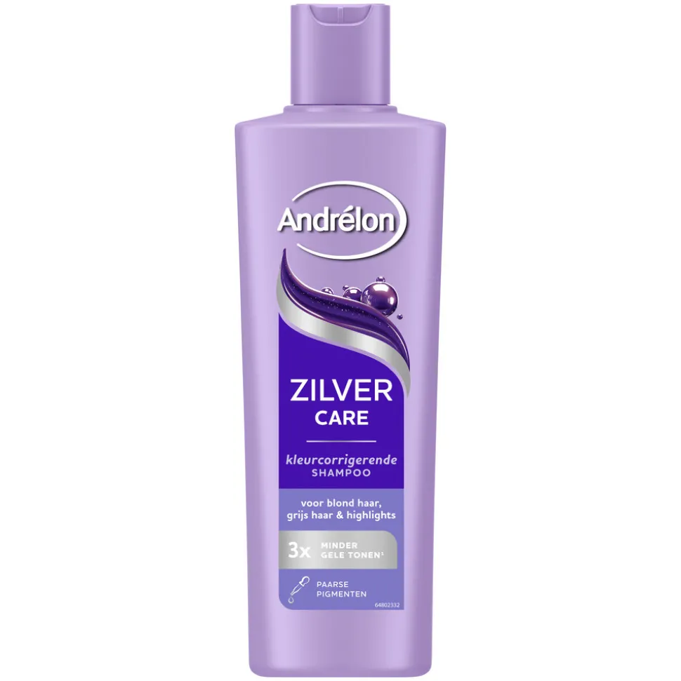- De kleurcorrigerende Andrélon Zilver Care Shampoo bevat paarse pigmenten