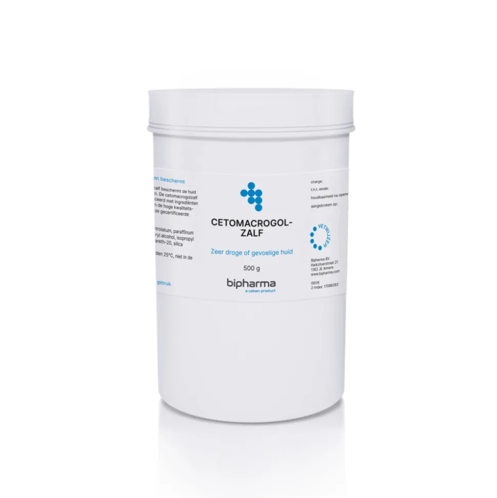 Bipharma Cetomacrogolzalf is een intensief hydraterende en beschermende basiszalf voor de zeer droge, schrale of gevoelige huid. De rijke formule met vaseline en paraffine legt een beschermende laag op de huid, waardoor vochtverlies wordt voorkomen en de huid beter gehydrateerd blijft. Geschikt voor jong en oud en ideaal voor dagelijks gebruik bij een sterk vochtarme huid.
