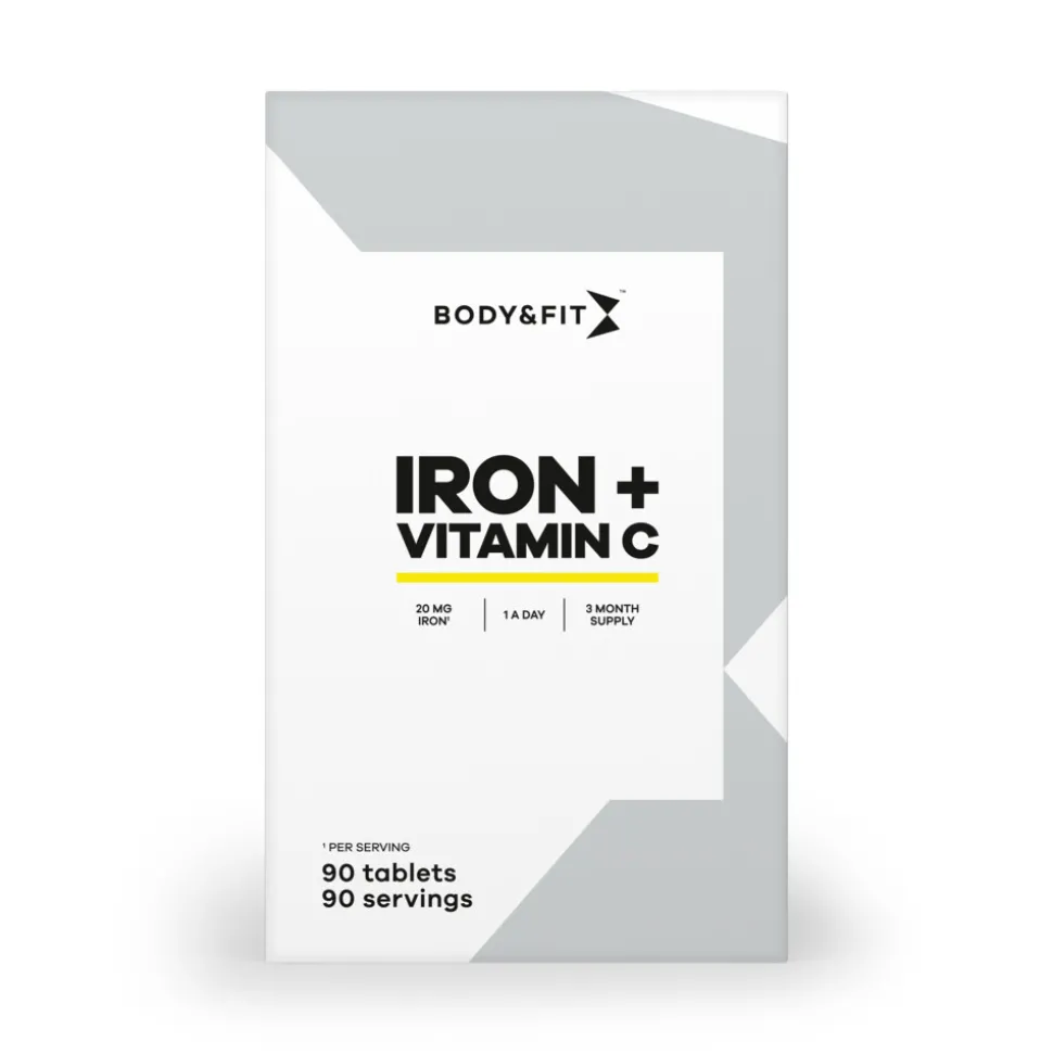 Body & Fit IJzer & vitamine C bevat ijzer en vitamine C. IJzer bevordert de energiestofwisseling en draagt bij aan fitheid. Vitamine C heeft een positieve invloed op het immuunsysteem, is goed voor het geheugen en stimuleert de opname van ijzer. IJzer en vitamine C tabletten van Body & Fit zijn de perfecte dagelijkse aanvulling. De tabletten bevatten per dosering 20 mg ijzer en 20 mg vitamine C. Neem 1 tablet per dag.