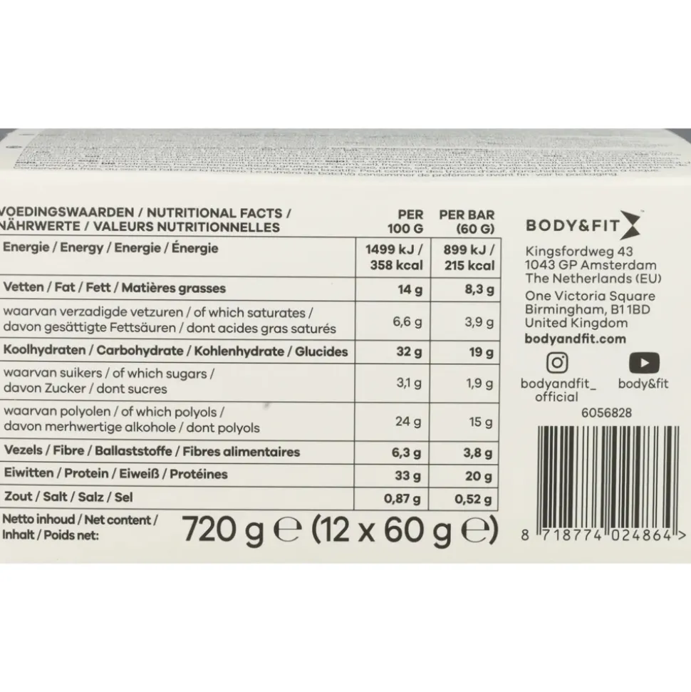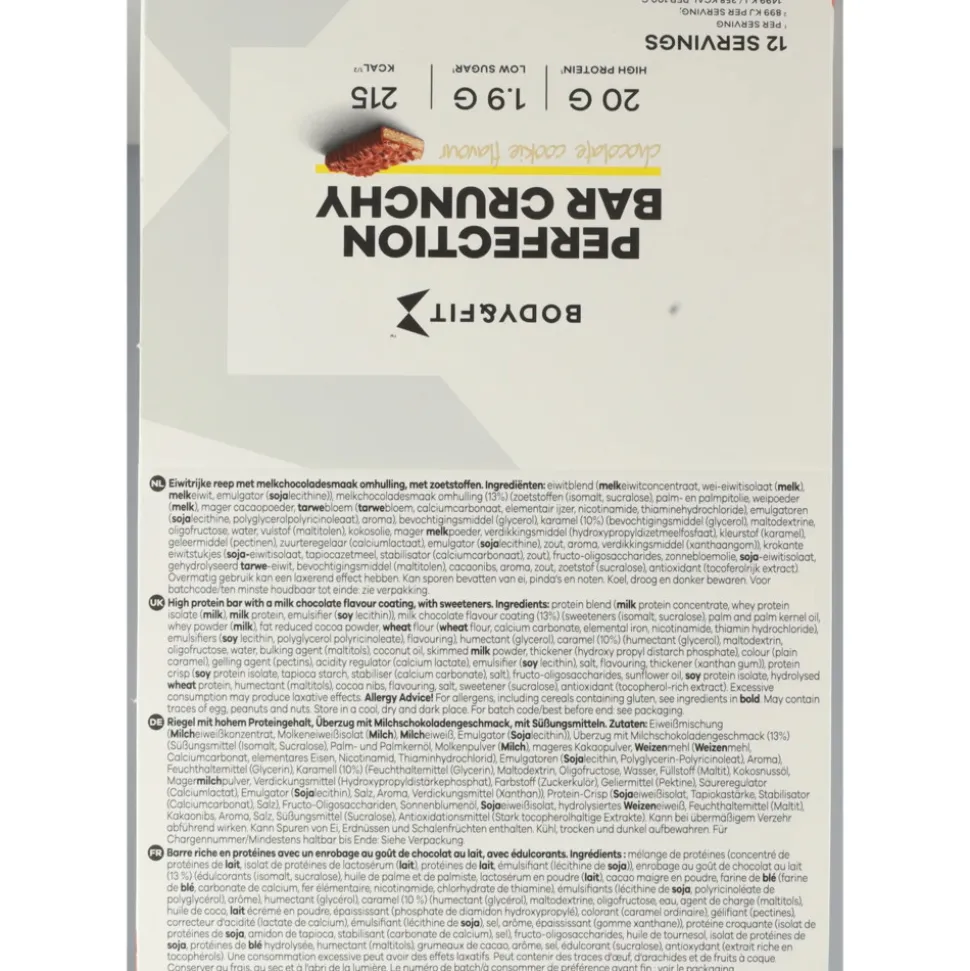 Body & Fit Perfection Bar Crunchy Milk Chocolate Cookie combineert de waanzinnig goede voedingswaardes van “eat clean” eiwitrepen met de smaak en textuur van je favoriete protein bars. Deze eiwitrepen zijn zo onweerstaanbaar lekker en crunchy dat je niet kunt geloven dat ze maar liefst 20 gram hoogwaardig eiwitbevatten en volledig vrij zijn van toegevoegde suikers.