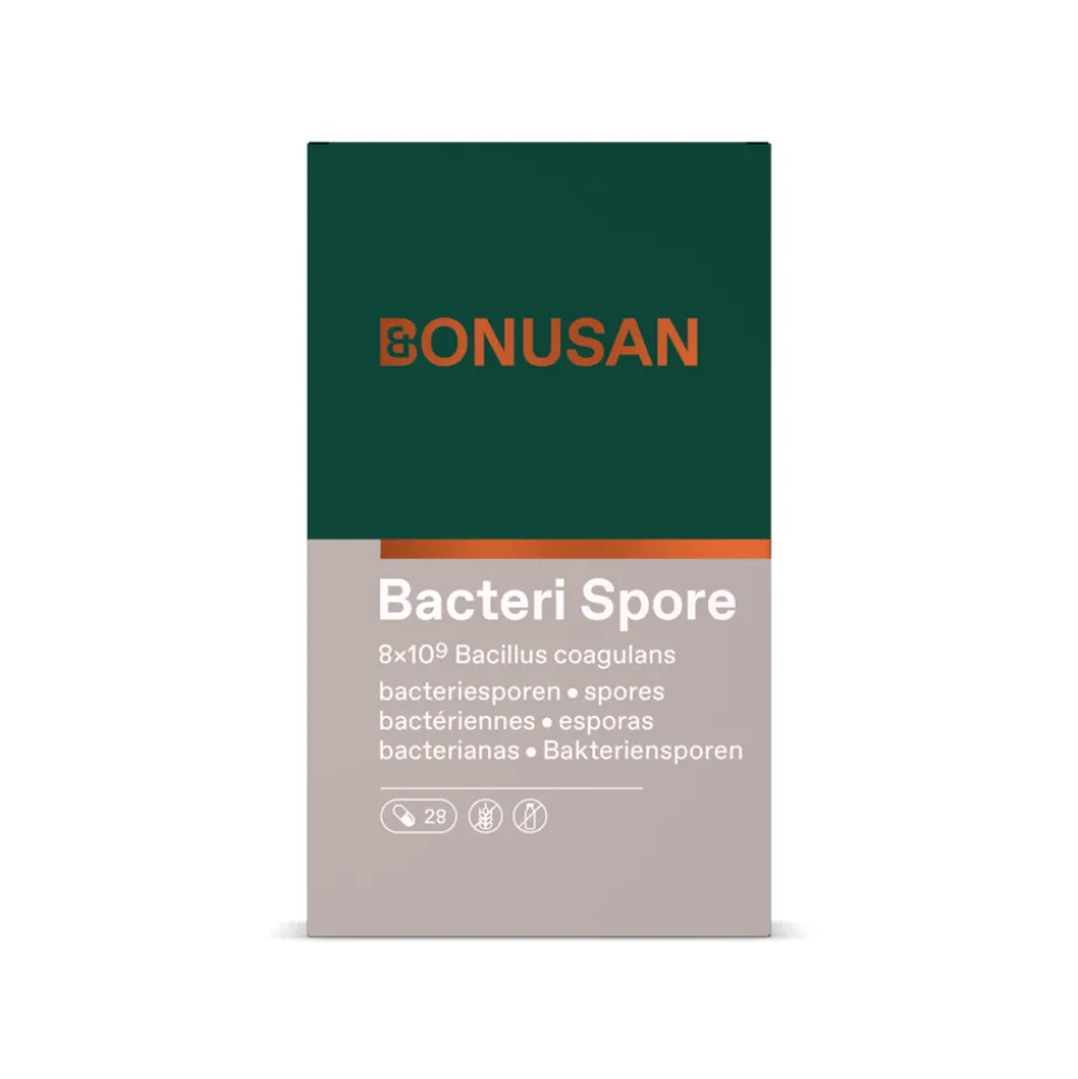Bonusan Bacteri Spore is een voedingssupplement met maar liefst 8 miljard bacteriesporen, die zuur- en warmteresistent zijn. Deze dagelijks te gebruiken capsules bevatten Bacillus coagulans, een sporenvormende microbioticum, die pas vrijkomen bij het kauwen. Het bijzondere aan deze sporen is dat ze gemakkelijk het maagzuur kunnen passeren om vervolgens in de darm te ontkiemen.