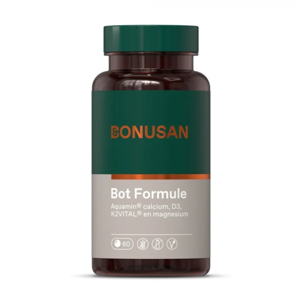 Bonusan Bot Formule is een uitgebalanceerde formule met calcium, magnesium en vitamine D & K welke bijdraagt tot de instandhouding van normale botten. Bonusan Bot Formule bevat de optimale calcium-magnesiumverhouding. Bonusan bevat