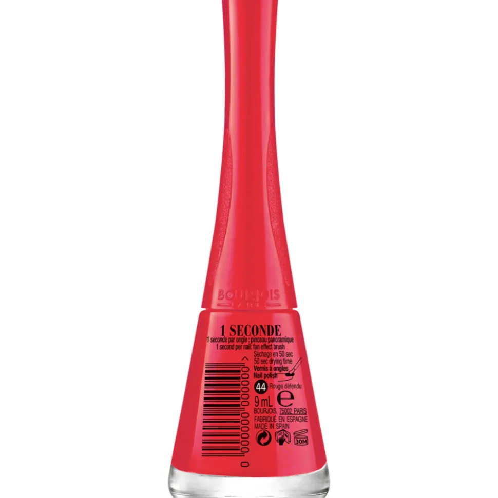 Bourjois 1 Seconde Nail Polish is een nagellak die is ontworpen om snel en gemakkelijk aan te brengen, met de belofte van een snelle droogtijd. Het innovatieve penseel en de formule zouden de nagels in één seconde moeten voorzien van intense kleur en een glanzende afwerking.