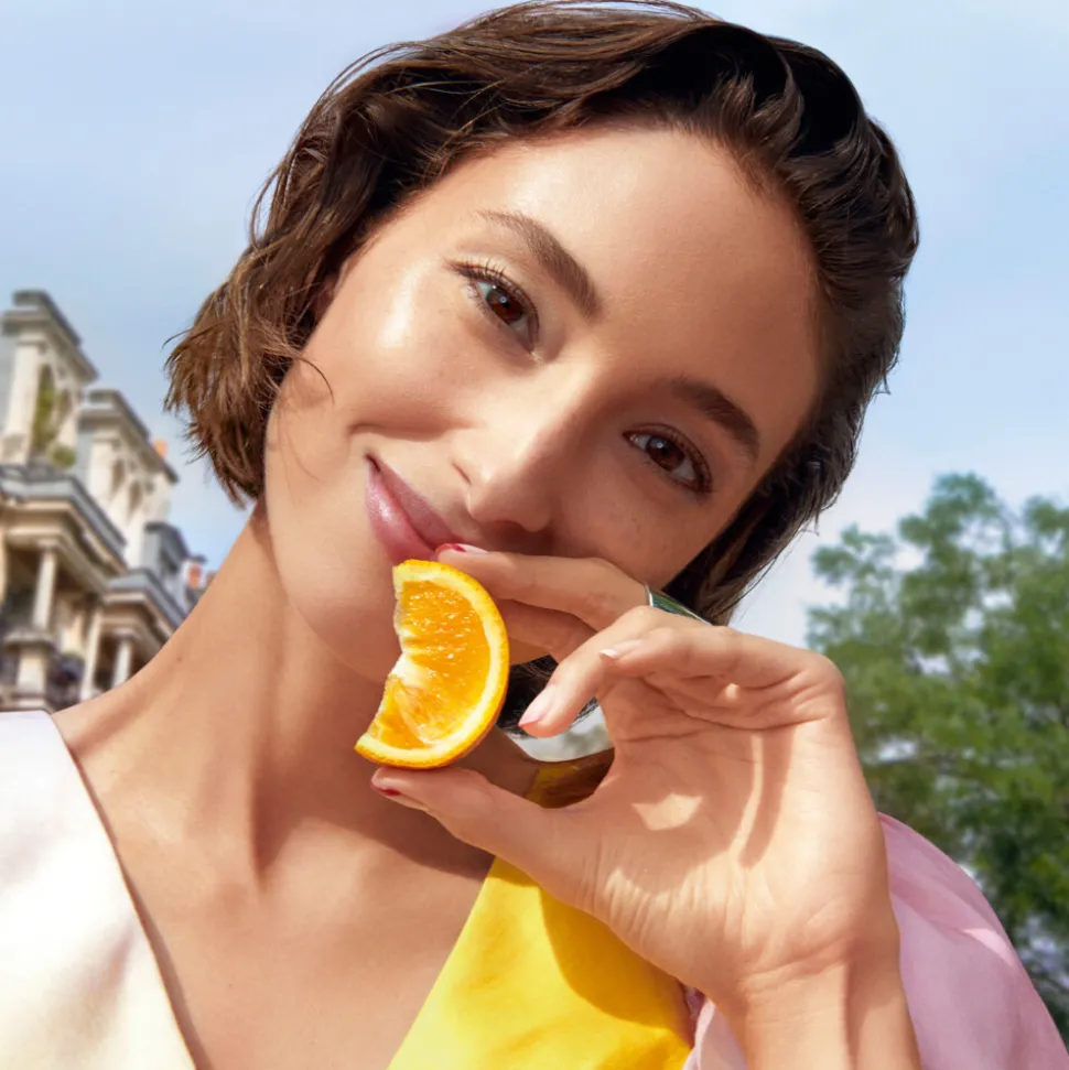 Aqua/water/eau, Gemodificeerd Maiszetmeel, Dicaprylyl Ether, Dicaprylyl Carbonaat, Isododecaaan, Glycerine, Trimethylsiloxysilicaat, Silica, Natriumchloride, Tri(polyglyceryl-3/lauryl) Hydrogeneerd Trilinoleaat, Steearalkonium Bentoniet, Butaandiol, Cetyl Peg/ Ppg-10/1 Dimethicone, Mica, Propyleencarbonaat, Parfum/geur, Tocopherol, Triethoxycaprylylsilane, Natriumbenzoaat, Chlorfenesine, Ascorbyl Palmitaat, Propyleenglycol, Panthenol, Methicone, Cucumis Melo (Meloen) Fruitextract, Pyrus (Appel) Fruitextract , Prunus Armeniaca (Abrikoos) Fruitextract, Kaliumsorbaat, Citroenzuur, Benzoëzuur, Sorbinezuur, Pentaerythrityl Tetra-di-t-butyl Hydroxyhydrocinnamaat, [Kan Bevatten/peut Contenir/+/-: Titaniumdioxide (Ci 77891), Ijzer Oxiden (Ci 77491, Ci 77492, Ci 77499)]