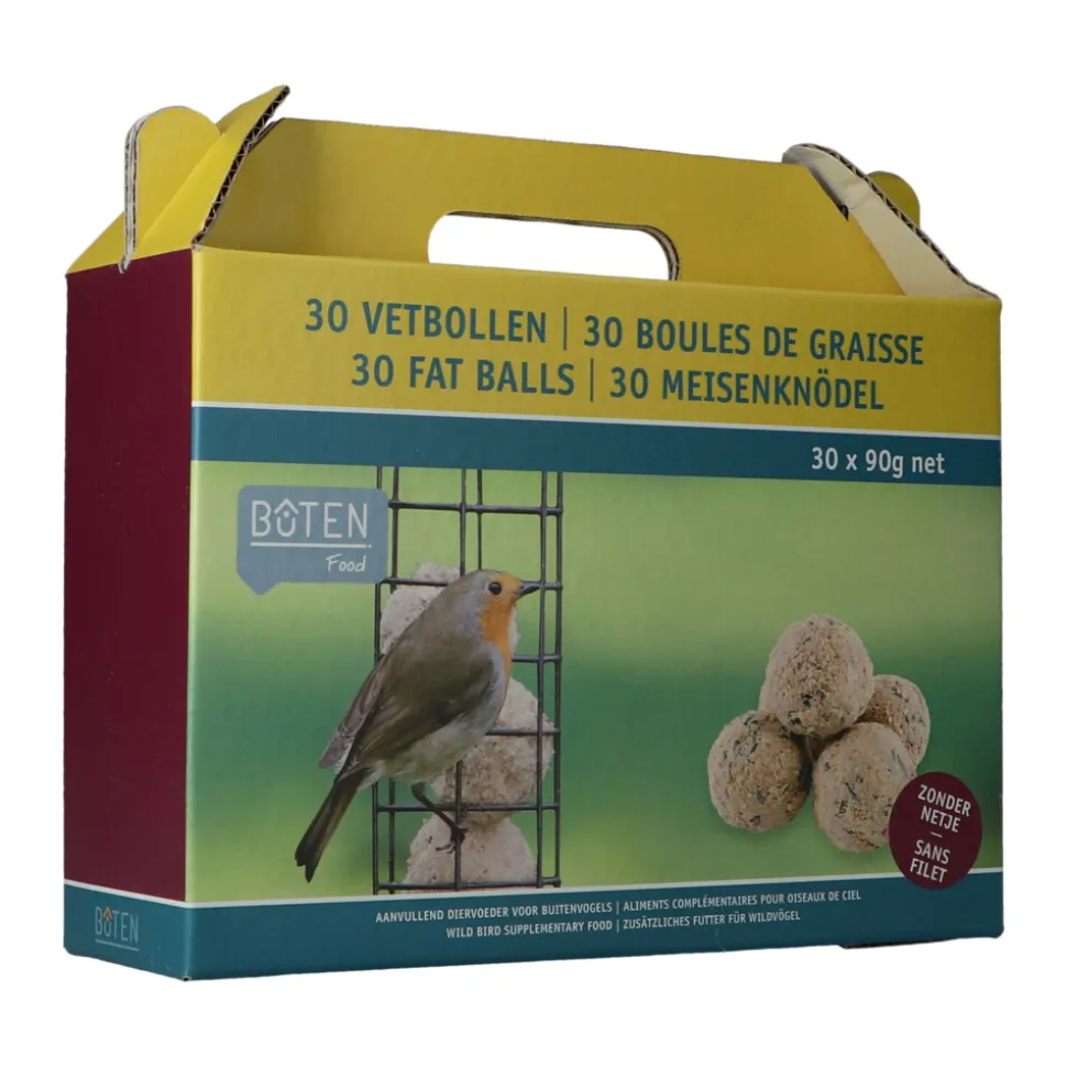 Deze vetbollen zijn gemaakt met hoogwaardige ingrediënten van niervet met een mix van granen en zaden. Granen en zaden zijn rijk aan vezels, eiwitten en vitamine B en de vetbollen bevatten ook vitamine E en mineralen. Vetbollen zonder netje.