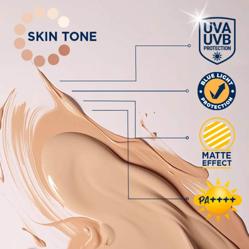 - Hoge bescherming: Biedt SPF bescherming tegen UVA-, UVB-stralen en blauw licht.