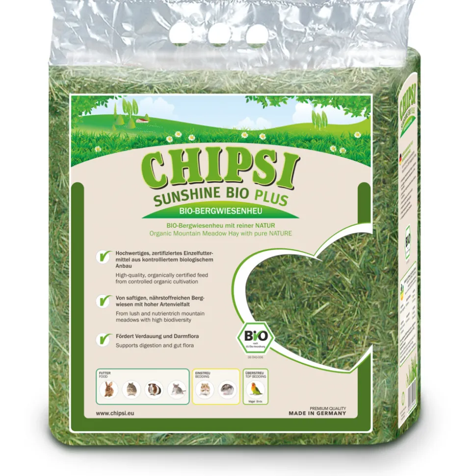 Chipsi Sunshine Bio Plus Weidehooi Naturel is een hoogwaardige, natuurlijke voeding voor knaagdieren en konijnen. Dit biologische weidehooi is zorgvuldig geselecteerd en gedroogd om de beste kwaliteit te garanderen. Het hooi is rijk aan vezels, wat bijdraagt aan een gezonde spijsvertering en ondersteunt het natuurlijke kauwgedrag van je huisdier.