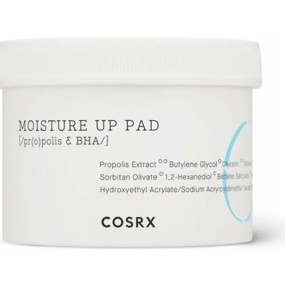COSRX One Step Moisture Up Pads zijn hydraterende pads geïmpregneerd met een voedende formule om de huid te hydrateren en te verzachten. Deze pads zijn doordrenkt met hyaluronzuur en propolis-extract, die helpen bij het hydrateren en kalmeren van de huid, waardoor deze er gezond en gehydrateerd uitziet. Ze zijn ontworpen om snel en gemakkelijk vocht aan de huid toe te voegen, waardoor deze zacht en soepel aanvoelt.
