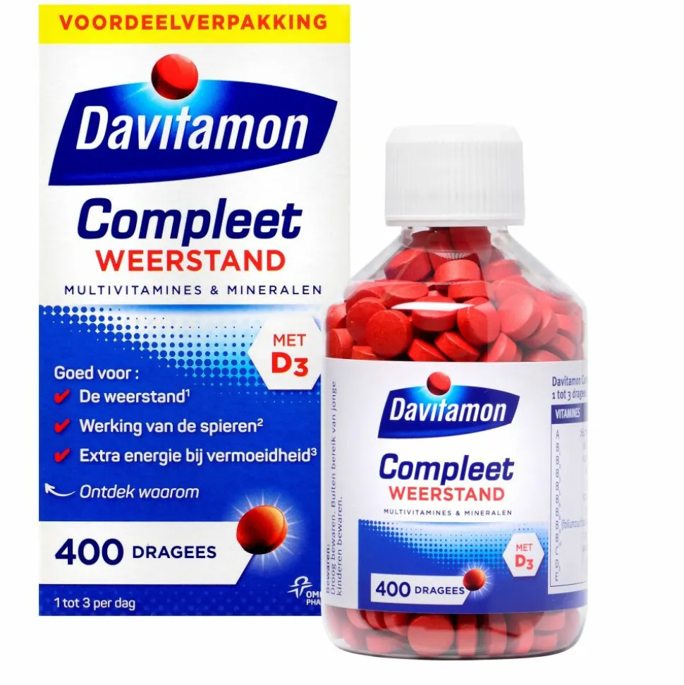 Iedere dag, op elke leeftijd, in elke levensfase. De producten van Davitamon Compleet zijn speciaal ontwikkeld voor volwassenen en bevatten een combinatie van vitamines en mineralen die o.a. goed zijn voor de weerstand (vitamine A, B6,B11, B12,C en D, koper, selenium, ijzer en zink). Ze zijn verkrijgbaar in Compleet dragees en KauwVitamines. Daarnaast heeft Davitamon Compleet ook complete multivitamines en mineralen die aangevuld zijn met extra ingredienten voor specifieke ondersteuning.
