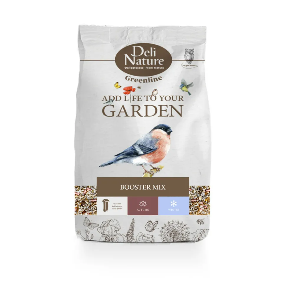 De Deli Nature Greenline Booster Mix 2 heeft een hoog energiegehalte wat zorgt voor een boost bij de buitenvogels.Deze mengeling is zeer geschikt om te geven in de koude wintermaanden. De mengeling bevat 30% ruw vet wat zorgt voor een hoog energiegehalte. Geschikt voor diverse soorten tuinvogels zoals mezen, roodborstjes, mussen, merels, lijsters, spreeuwen en vinkachtigen.
