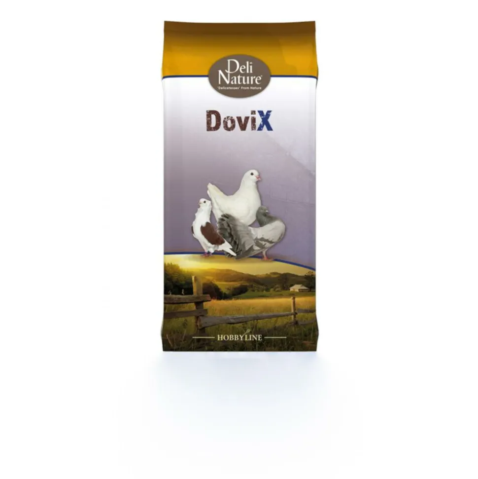DoviX Kortbek van Deli Nature voor duiven, deze rijke mengeling is specifiek afgestemd op alle behoeften van kortsnavelige sierduiven. De mengeling bevat overwegend kleine granen en zaden om de opneembaarheid te vergemakkelijken. Verkrijgbaar in 20 kg.