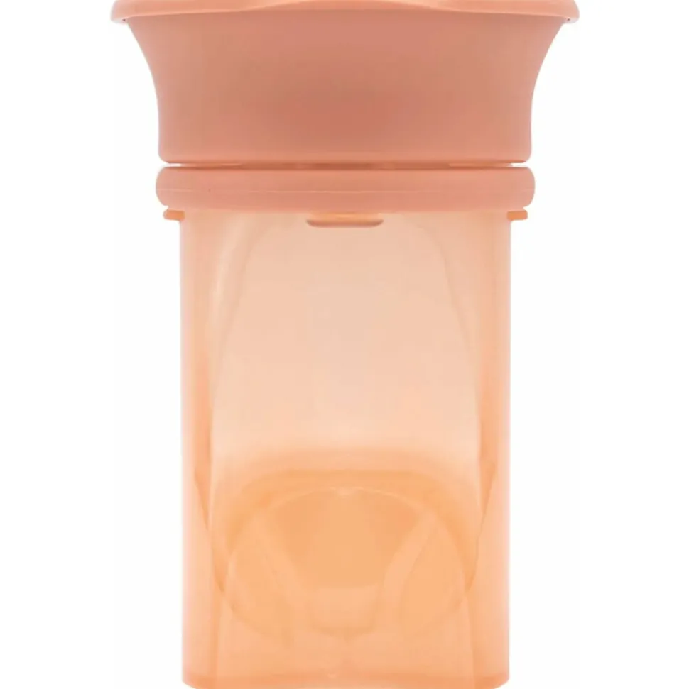 Met de 360 graden beker maakt het niet uit waar het kindje aan de rand drinkt. Wanneer het kindje aan de rand zuigt, kan het kindje drinken. Door de vorm van de beker stroomt het drankje naar de rand wanneer je de beker horizontaal houdt. Dit zorgt dat je kind de nek niet naar achter hoeft te buigen. Door het slanke ergonomische model is de beker goed vast te houden voor kleine handjes.