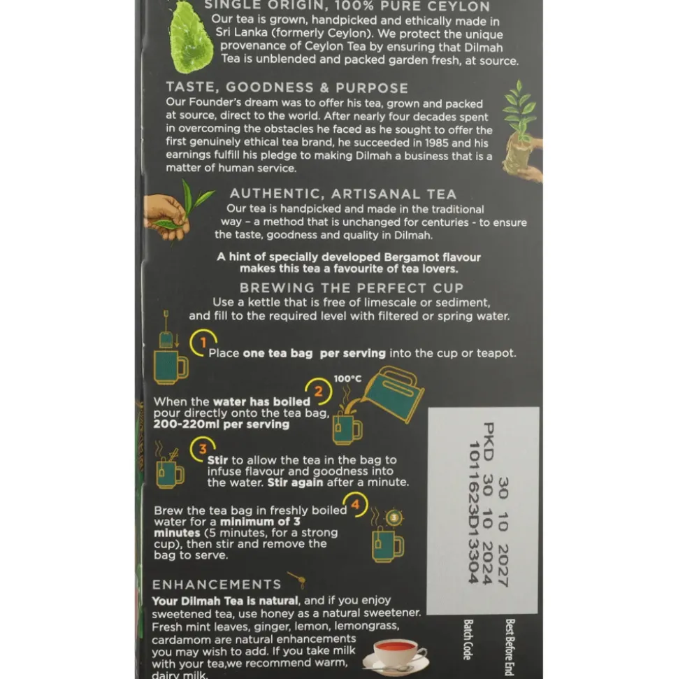 Dilmah staat voor 100% pure Ceylonthee van de hoogste kwaliteit. Dat betekent vers verpakt en onvermengd. Een thee voor echte theeliefhebbers, met liefde geproduceerd door experts.