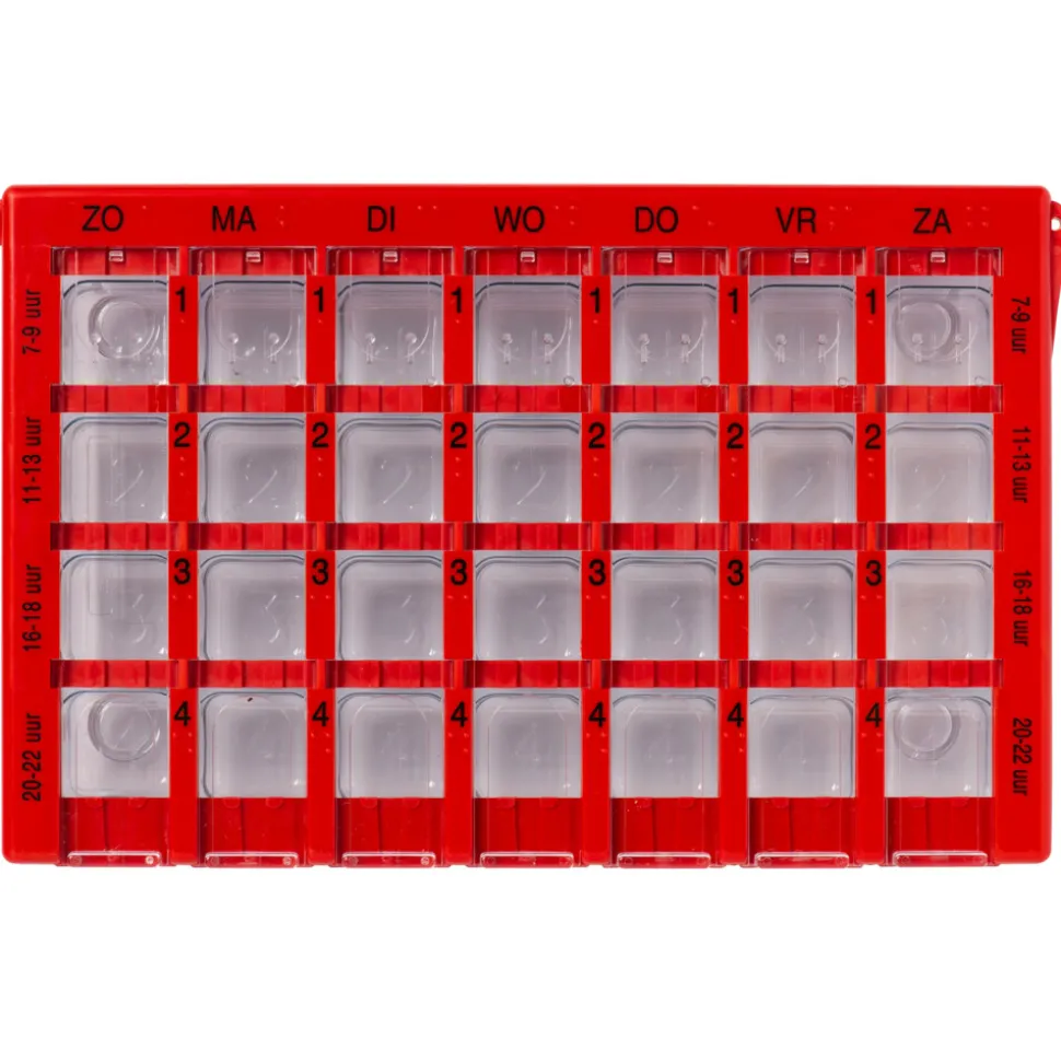 De Dosett Medicator Doseerdoos is een handige medicijndoos om de dagelijkse dosering medicatie in op te bergen. De Dosett Medicator Doseerdoos heeft een indeling van 7 dagen en per dag 4 aparte vakjes voor medicijnen. Zo is het gemakkelijk om de juiste dosis aan te houden. De Dosett Maxi is voorzien van een receptenkaart die gemakkelijk te verwisselen is, de inlegger is uitneembaar en kan gemakkelijk met de hand gewassen worden.