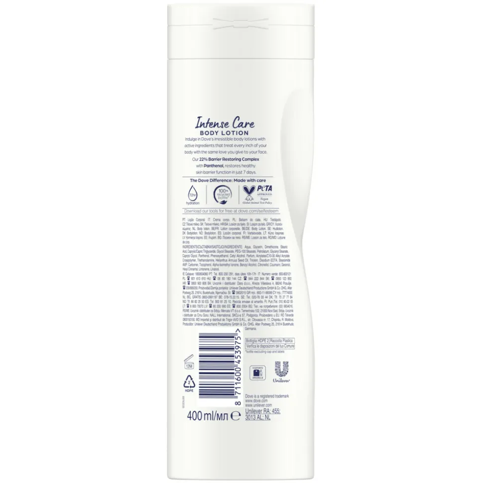 - Dove Body Love Intense Care Bodylotion hydrateert de zeer droge huid