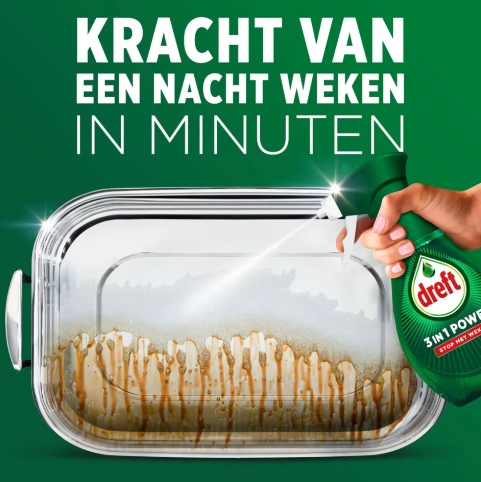 Sla het weken over met de nieuwe Dreft 3in1 Power Spray Stop Met Weken, een snellere, moeiteloze manier om je vaat voor te behandelen, voor een onberispelijke reiniging
