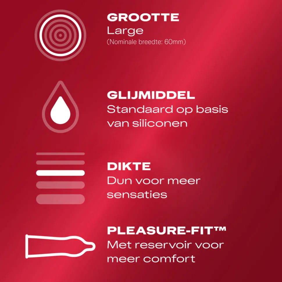 - Natuurlijke Sensatie: Deze condooms zijn dunner dan standaard condooms, waardoor je een meer natuurlijke en intense seksuele ervaring kunt beleven.