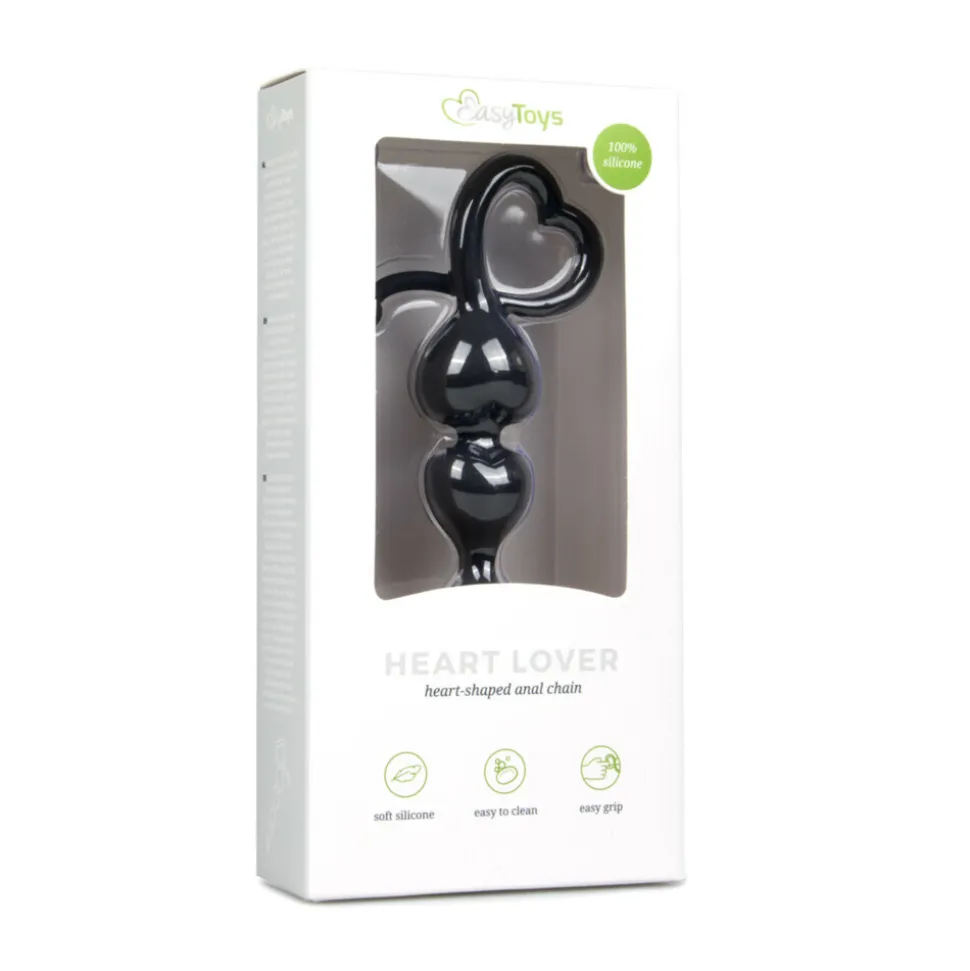 Easytoys Anale kralen met hartvormige greep Zwart