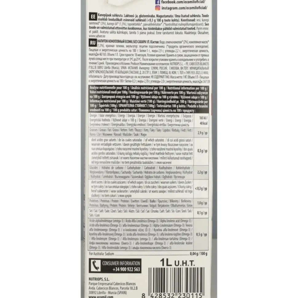 Goed schudden voor openen. Na opening gekoeld bewaren en binnen 5 dagen consumeren. Biologische hennepdranken van Ecomil kunnen op elk moment van de dag, warm of koud, in koffie of thee worden gedronken en kunnen ook worden gebruikt in uw recepten: sauzen, cakes, pannenkoeken, puddingen, etc.