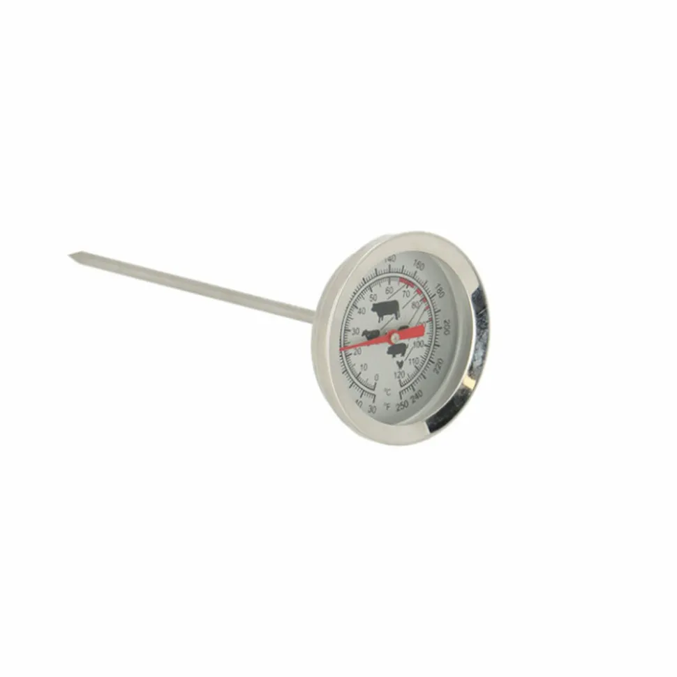Deze vlees thermometer kan worden gebruikt om te meten de kerntemperatuur van gebarbecued voedsel zoals steaks, grote braadstukken of vis te achterhalen. Zo weet je beter hoe ver je voedsel is met garen. Vooral bij grote braadstukken, dikke steaks of hele vis, is het moeilijk om van de buitenkant te zien of het de juiste temperatuur van gaarheid heeft bereikt. De zogenaamde kerntemperatuur temperatuur van het gegrilde voedsel bepaalt of het eten gaar is of niet. Deze kerntemperatuur kan gemeten worden met deze vlees thermometer en zo weet je zeker dat je biefstuk of vis goed gegaard van de barbecue afkomt.