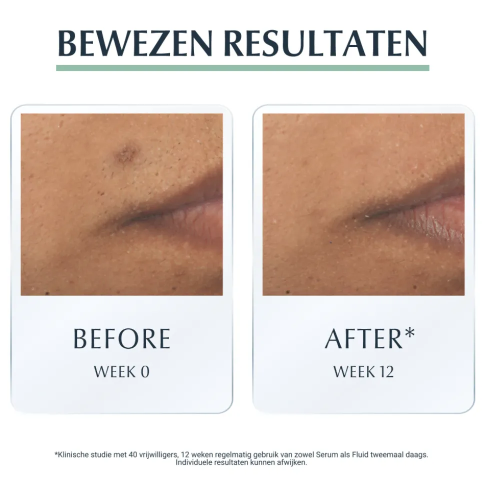 - Anti-vlekken: Gepatenteerd Thiamidol* vermindert hardnekkige vlekken na acne (post-inflammatoire hyperpigmentatie) en voorkomt terugkeer ervan