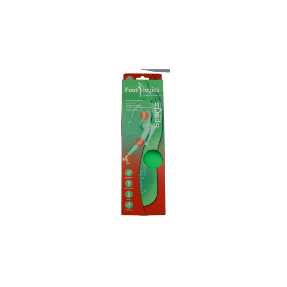 Verwijder eerst het originele voetbed uit de schoenen zodat de ondergrond plat is. Plaats dan de Footlogics Sports inlegzool. Knip de zool- indien nodig- langs de stippellijn op maat of leg het originele voetbed uit je schoenen tegen de zool aan
