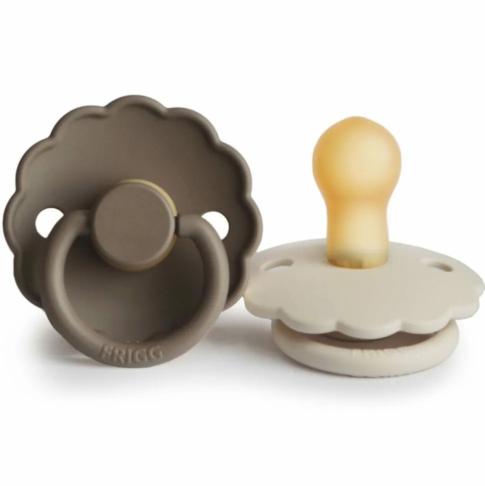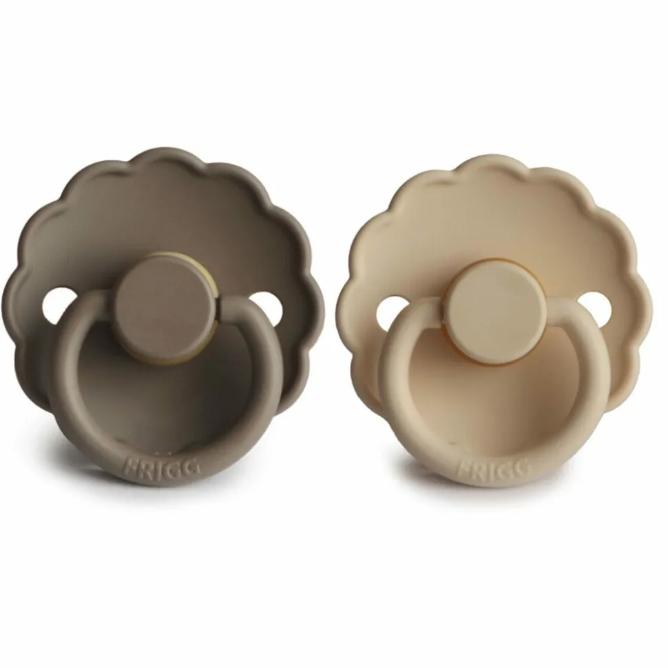 De FRIGG Daisy fopspeen vol charme is verkrijgbaar in zowel monochrome als gemengde kleuren.