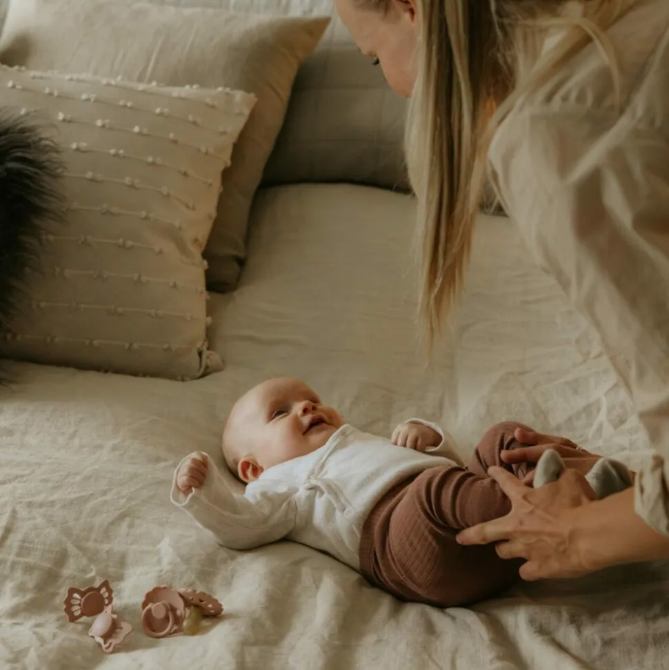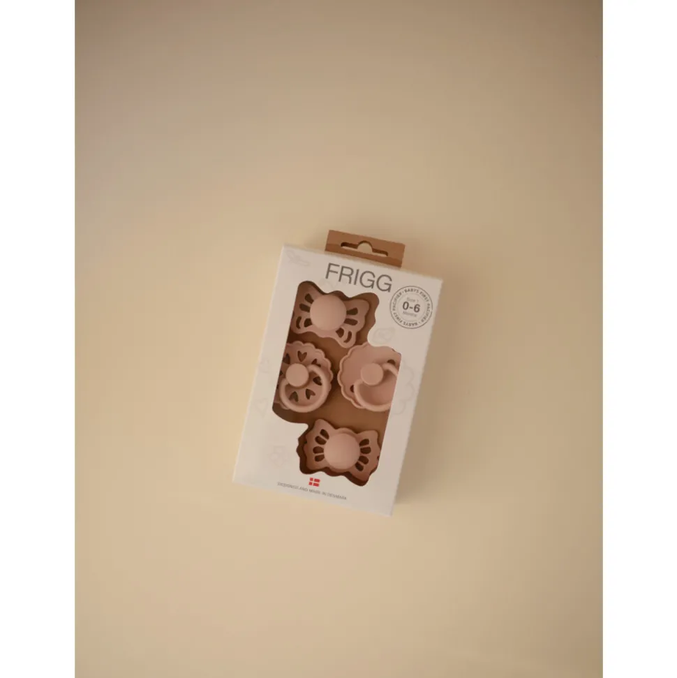 Voor nieuwe ouders kan het moeilijk zijn om uit te vinden welke fopspeen het beste is voor hun kleintje. Met de ‘Baby’s eerste fopspeen’-set van FRIGG, bestaande uit 4 verschillende FRIGG fopspenen met verschillende materialen en vormen fopspenen, kunnen ouders verschillende fopspenen uitproberen om erachter te komen welke fopspeen hun baby het prettigst vindt.