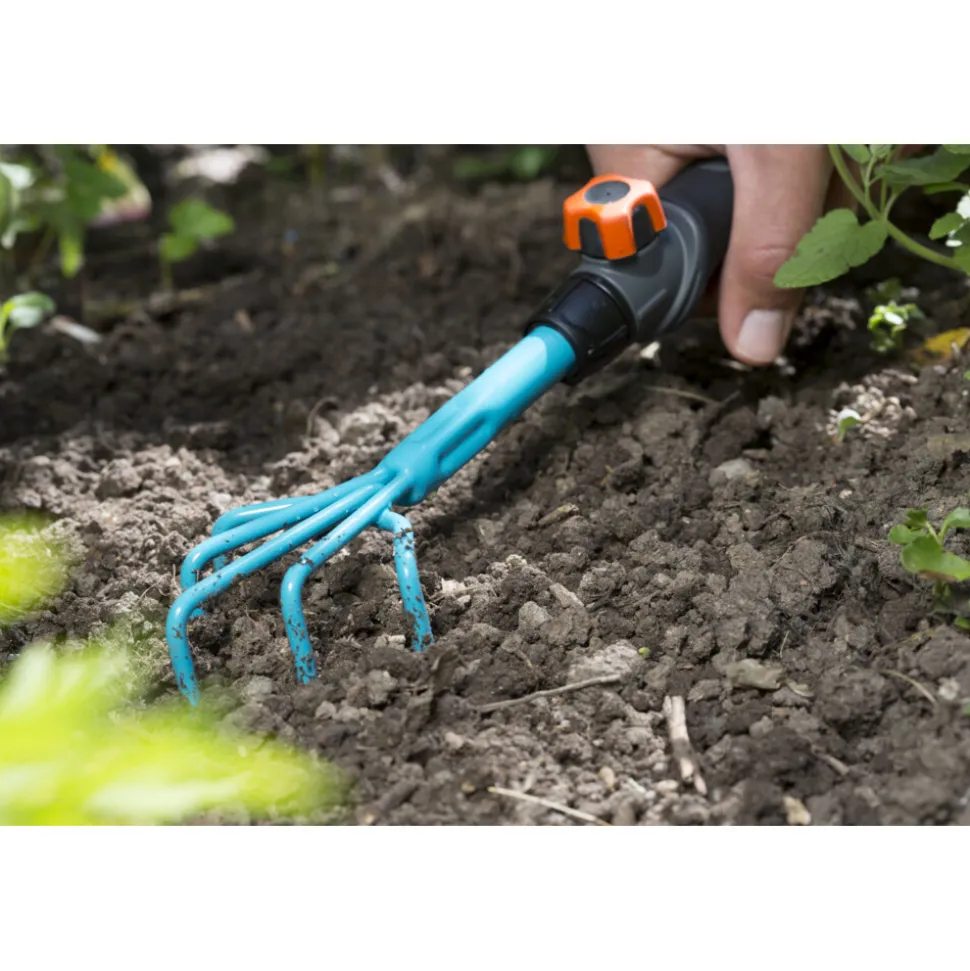 Met het Gardena combisystem Klauwtje maak je de grond makkelijk los. Dankzij de makkelijk verwisselbare accessoires is het Gardena combisystem flexibel te gebruiken. Het combisystem Klauwtje kan met alle stelen van het Gardena combisystem worden gecombineerd en wordt bevestigd door hem op de steel te schuiven en vast te schroeven. Om comfortabel en niet voorover gebogen te werken, kun je de handgreep makkelijk verwijderen en vervangen door een van de stelen uit het combisystem. De veilige verbinding tussen Klauwtje en steel zorgt ervoor dat je altijd comfortabel kunt werken. De ergonomisch gevormde greep met geïntegreerd zacht element ligt perfect in de hand. Het gebogen uiteinde voorkomt dat het Klauwtje uit je hand glijdt. Het Klauwtje is 7 cm breed en is gemaakt van hoogwaardig staal.
