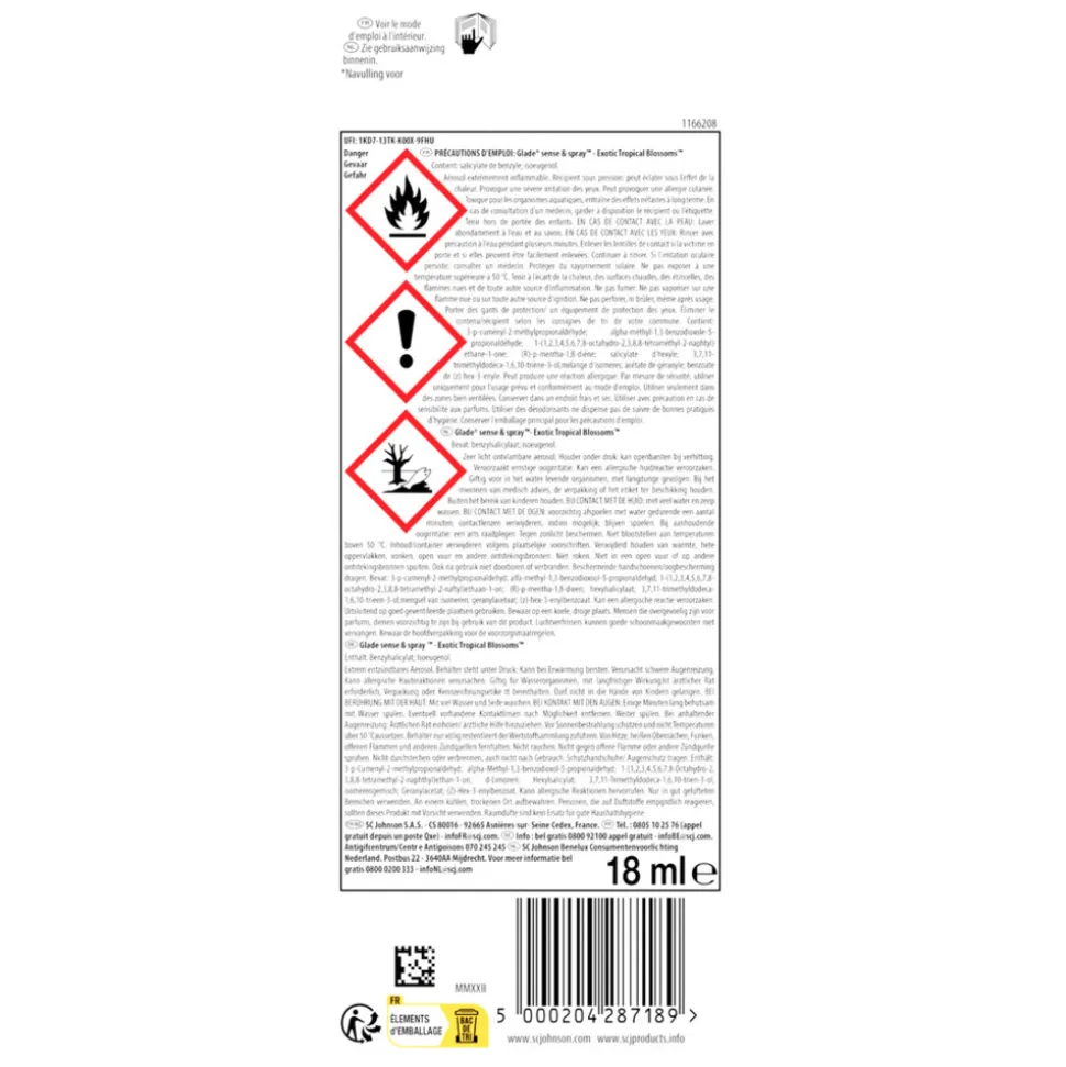 • Deze navulling past in de Glade Sense & Spray houder.