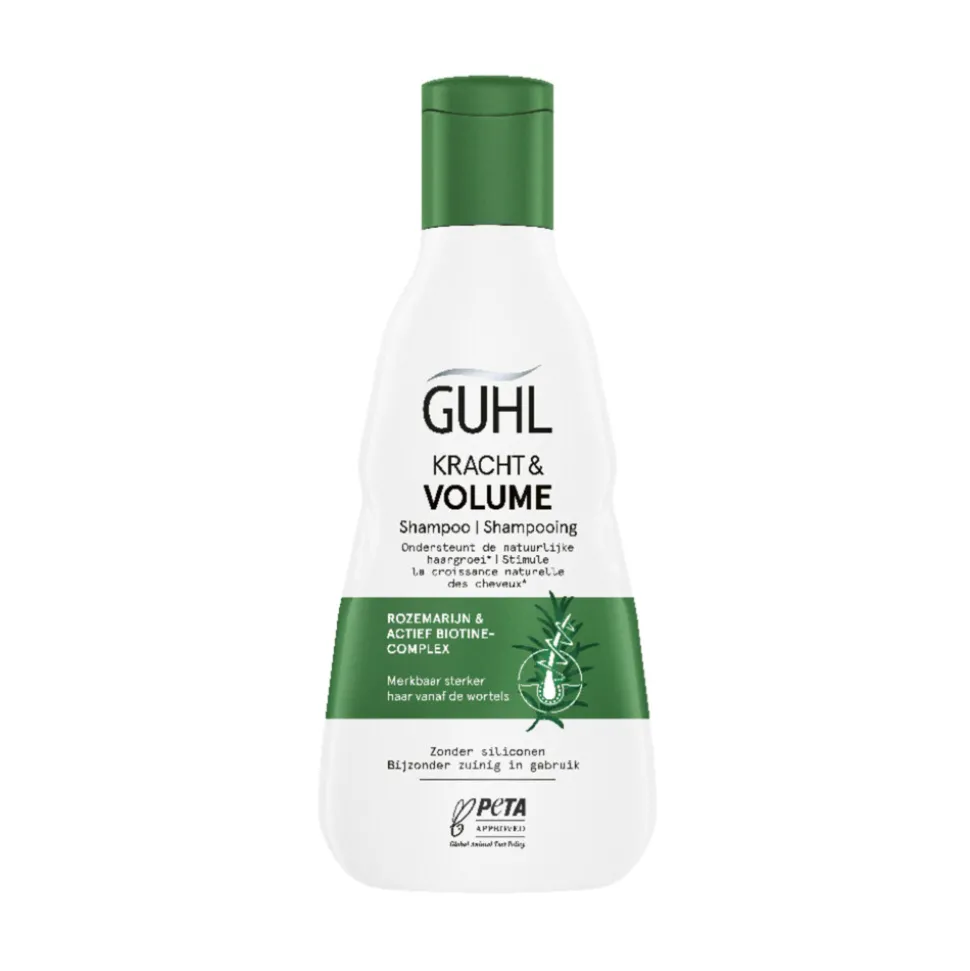 Guhl Kracht & Volume Shampoo versterkt dunner wordend haar en ondersteunt natuurlijke haargroei*. De shampoo, geformuleerd met vitaliserend rozemarijnextract en een actief biotine complex, reinigt het haar op milde wijze en geeft het haar weer nieuwe kracht. Voor merkbaar sterker haar vanaf de wortels!