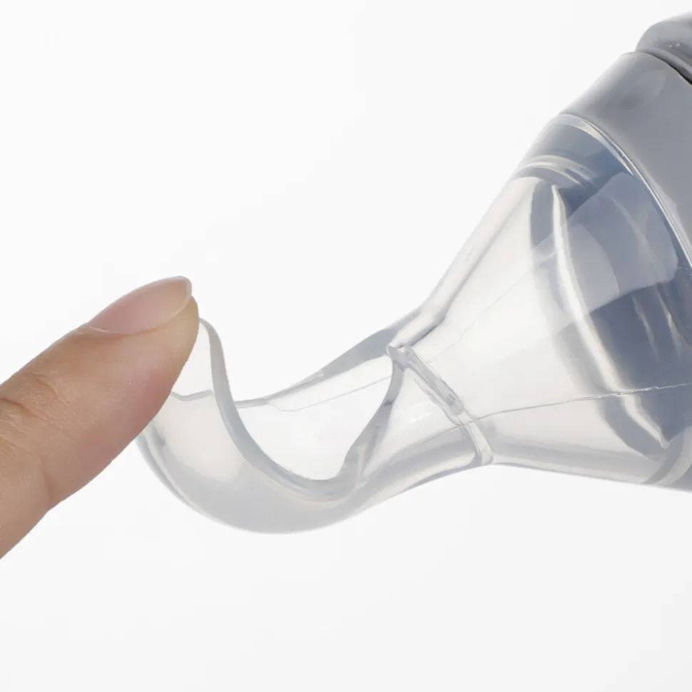 Vul de fles met de gekozen/ zelf gemaakte babyvoeding. Het voedsel blijft in de lekvrije fles tot etenstijd. Verwijder de deksel en knijp zachtjes in de fles om het voedsel op de lepel te krijgen. Zodra u klaar bent met voeden, plaats de deksel er weer op en zet het eventueel in de koelkast!