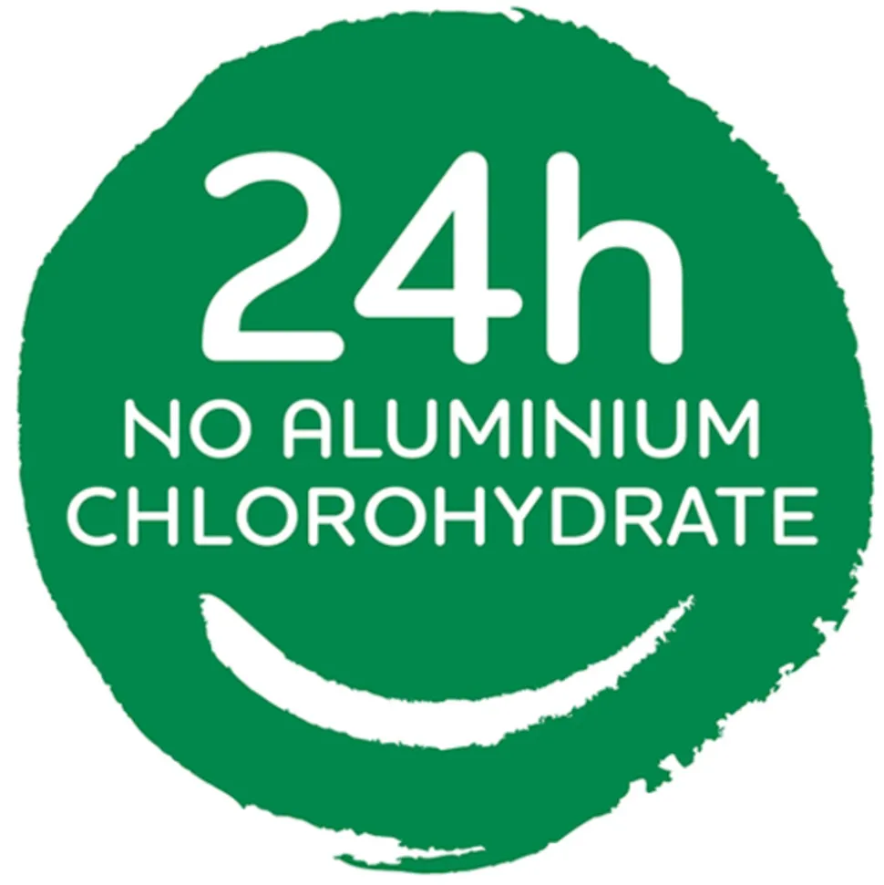 - Bevat geen aluminium chloorhydraat, alcohol, parabenen, drijfgassen, triclosan en minerale oliën