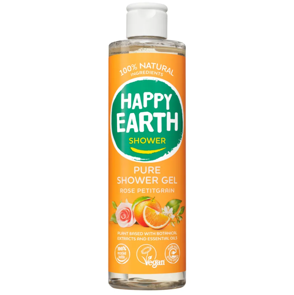 Happy Earth 100% natuurlijke Douchegel Rose Petitgrain Happy Earth Pure Shower Gel Rose Petitgrain is een 100% natuurlijke, vegan douchegel die gemaakt is van ingrediënten waar je huid en de aarde blij van worden. Alle ingrediënten in deze douchegel zijn gecertificeerd 100% natuurlijk en hebben de Natrue en Vegan Society keurmerken. Als je iets op je huid aanbrengt en door het doucheputje spoelt, is het fijn om te weten dat er geen vervuilende en vervelende ingrediënten in zitten zoals SLS/SLES, parabenen, kleurstoffen of andere nare toevoegingen. Alle douchegels van Happy Earth zijn vrij van microplastics en andere chemicaliën. Met deze shower gel zorg je goed voor jezelf en voor onze aarde! Deze verzorgende douchegel ruikt heerlijk naar een combinatie van bloemig (roos, jasmijn en iris) en fris (bergamot en sinaasappel). De douchegel is 100% biologisch afbreekbaar en bestaat uit een plantaardige formule met botanische extracten en essentiële oliën. Een douchegel om happy van te worden:
