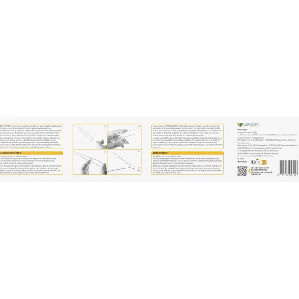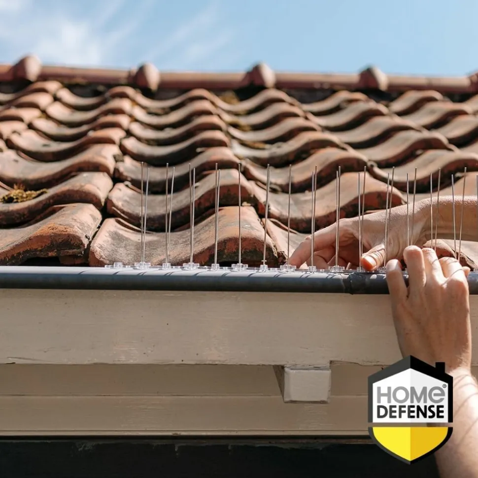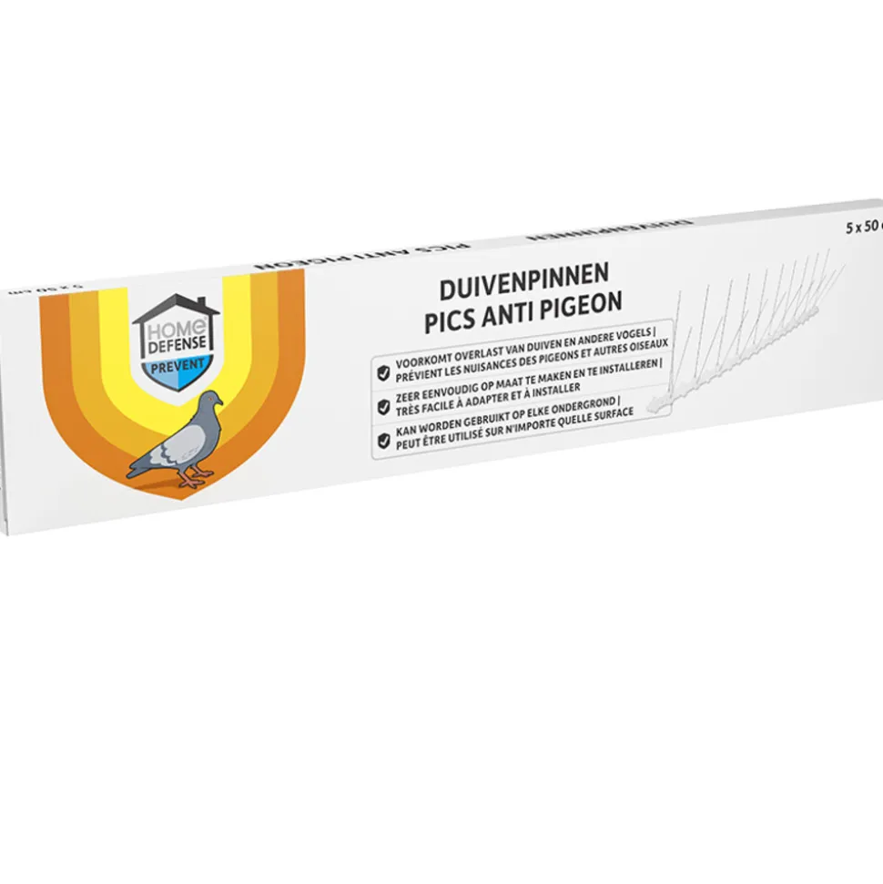 De KB Home Defense Duivenpinnen bieden een effectieve manier om duiven en andere vogels te weren van plekken waar ze overlast veroorzaken. De pinnen kunnen eenvoudig worden geplaatst op vensterbanken, dakgoten, balustrades en andere oppervlakken. Ze voorkomen vervuiling, geluidsoverlast en nesten zonder schade aan de vogels. Gemaakt van roestvrij staal en kunststof, zijn de pinnen stevig en blijven ze op hun plek, zelfs bij harde regen of wind. De set bevat vijf stroken van 50 cm, goed voor 2,5 meter bescherming. De flexibele pinnen kunnen eenvoudig op maat worden gemaakt dankzij de breekranden in de kunststof bodem.