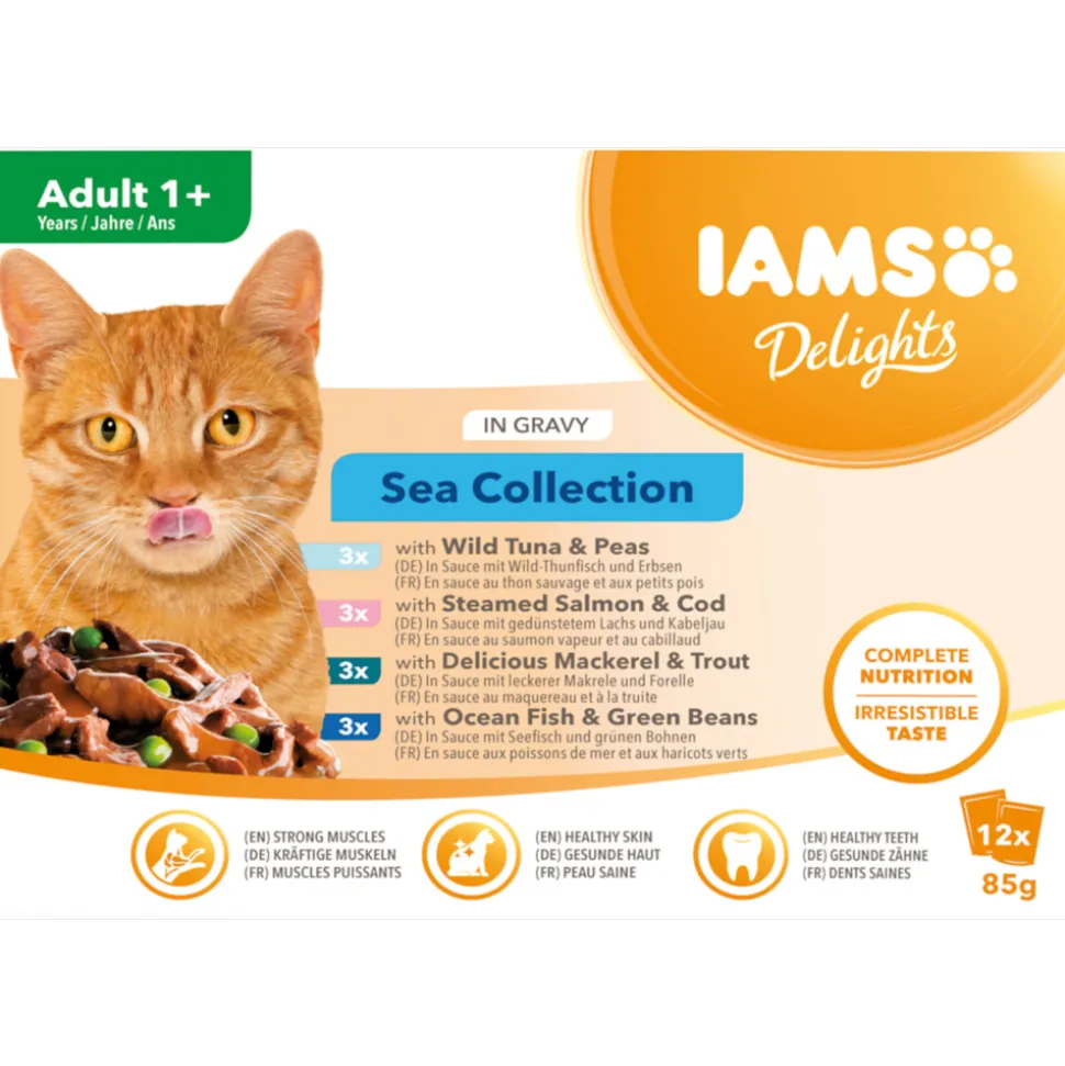 De Iams maaltijdzakjes zijn een heerlijke volwaardige maaltijd voor jouw kat. In deze box van 12 stuks zijn vier verschillende smaken aanwezig om jouw kat elke dag een andere smaak te kunnen bieden. Deze maaltijdzakjes is een 100% volledig en uitgebalanceerde voeding voor volwassen katten.
