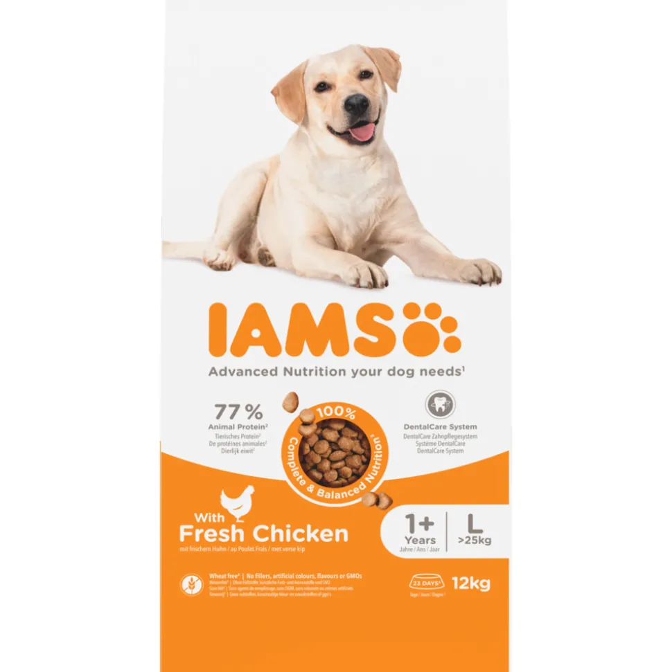 Iams for Vitality voor volwassen honden van grote rassen is een 100% complete en uitgebalanceerde specialistische voeding die de gezondheid en vitaliteit van jouw hond op 7 punten ondersteunt, waaronder zijn groei en ontwikkeling. Dit alles zit in een heerlijk recept met 77% dierlijke eiwitten (van het totale eiwitgehalte), waar jouw huisdier elke dag weer van kan genieten.