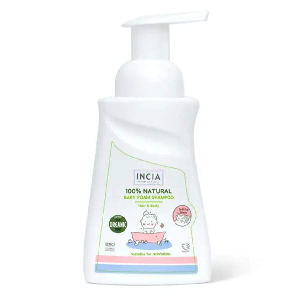 Reinig het tere babyhoofdje op milde en natuurlijke wijze met de INCIA 100% Natuurlijke, Schuimende Baby Shampoo. Deze zachte shampoo bevat geen parfum, siliconen, parabenen of chemische schuimmiddelen en is speciaal ontwikkeld voor de gevoelige babyhuid. De natuurlijke formule helpt bij het verwijderen van berg en voorkomt nieuwe eczeemvorming. De shampoo schuimt licht, prikt niet in de ogen en is geschikt voor zowel haar als lichaam. Zo geef je je kindje een zachte, veilige en frisse start – elke dag opnieuw.