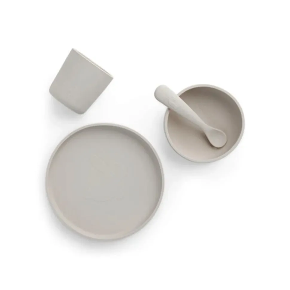 Het gehele kinderserviesset bestaat uit een bord, beker, kommetje en lepel en zijn gemaakt van 100% siliconen. 100% vrij van BPA, PVC, en PHTHALATES.
