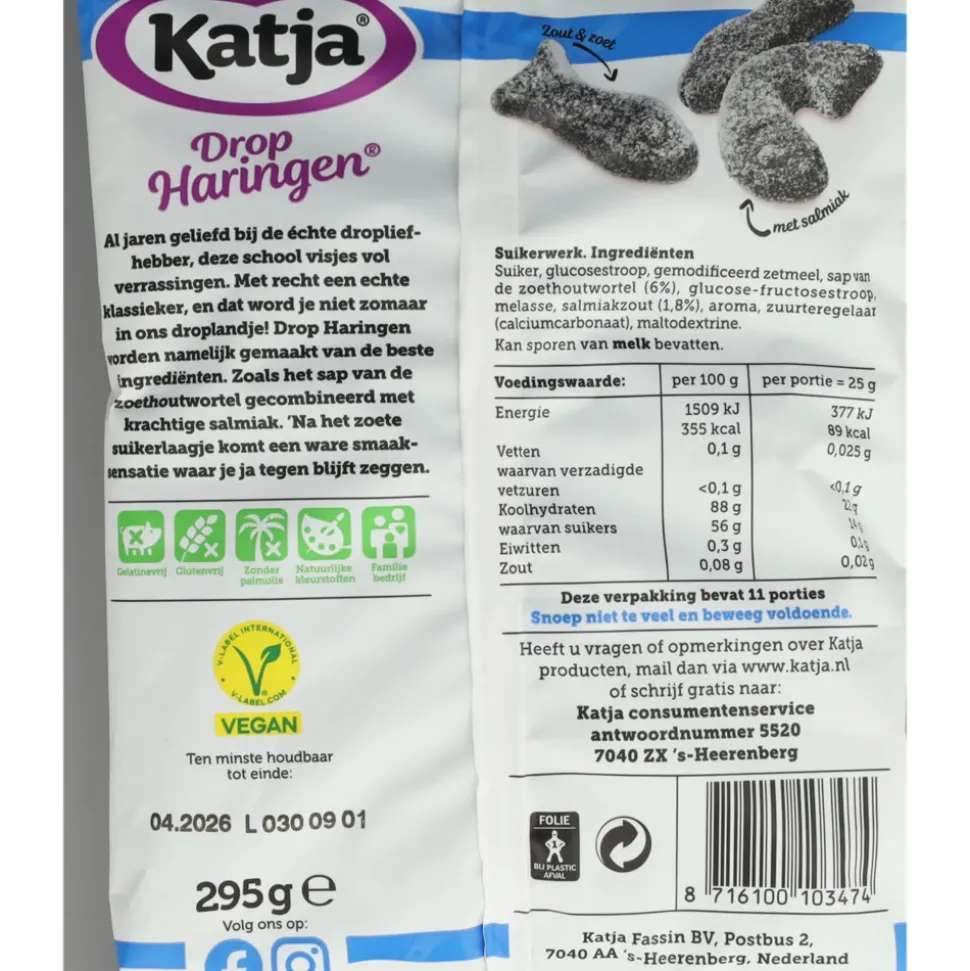 De enige echte Dropharingen van Katja worden gemaakt van gesuikerde zoute drop met salmiak. Al jaren geliefd bij de échte dropliefhebber en gemaakt met natuurlijke kleur- en smaakstoffen en zonder dierlijke gelatine.