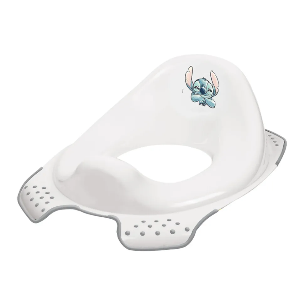 Stabiele toilettrainer van Keeeper met vrolijke opdruk van Stitch. Dankzij de rubber anti slip oppervlakken is deze super veilig voor uw kind, de toilettrainer kan namelijk niet meer heen en weer schuiven op het toilet. De nieuwe technologie van overprint (IML) voorkomt dat de afbeelding vervaagt of loslaat.